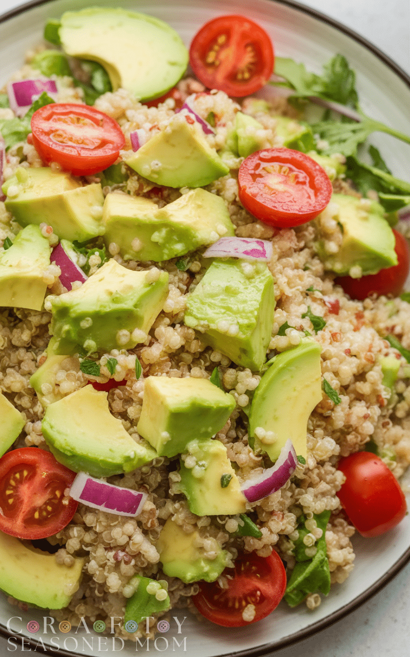 This fresh quinoa and avocado salad is a quick, vibrant, and satisfying dish. Mix cooked quinoa with diced avocado, cherry tomatoes, red onion, and a simple lime or lemon dressing. This easy quinoa recipe is perfect as a light lunch or side dish, offering healthy fats, protein, and fiber in every bite. Quick to prepare, it’s refreshing, colorful, and versatile, allowing you to add herbs, seeds, or cheese for extra flavor. Enjoy it alone, with grilled chicken, or as part of a picnic spread for a nutritious, delicious, and effortless meal.