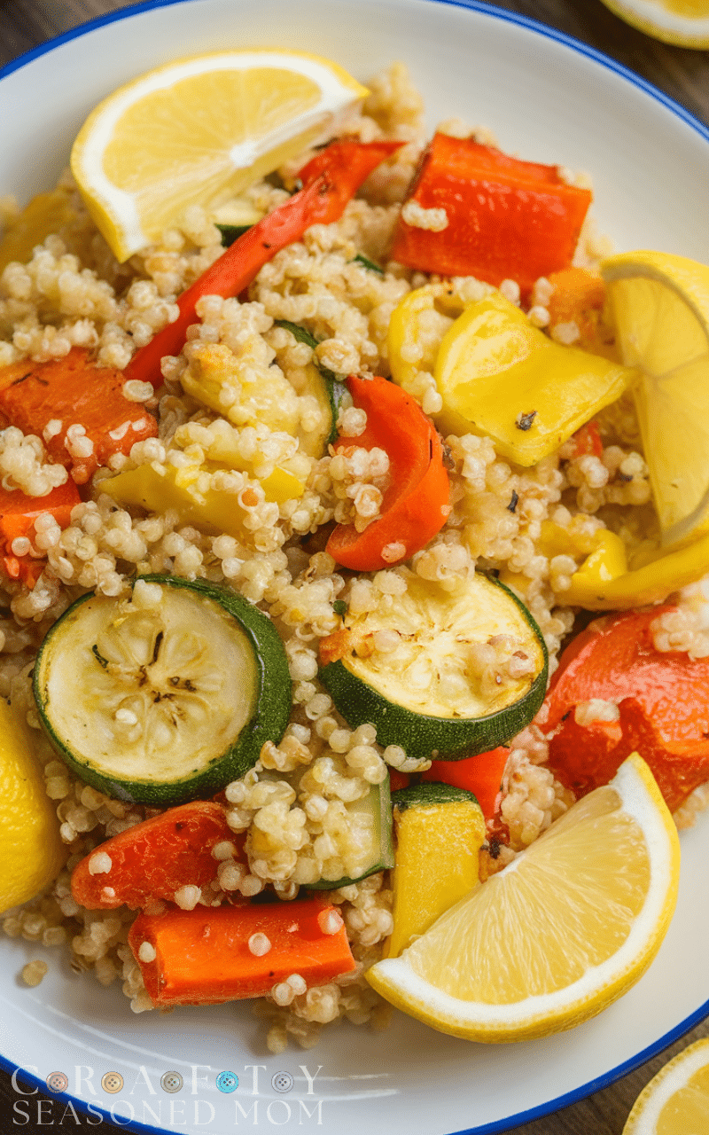 Brighten your plate with lemon quinoa paired with roasted vegetables. Roast your favorite vegetables like zucchini, carrots, and bell peppers, then toss them with cooked quinoa and a fresh lemon dressing. This easy quinoa recipe is light, tangy, and full of flavor, making it perfect as a side dish or main course. Quick to prepare and bursting with nutrients, it’s a refreshing way to enjoy quinoa while keeping your meals wholesome and colorful. Ideal for a healthy weeknight dinner or meal prep, it’s a recipe you’ll return to again and again.
