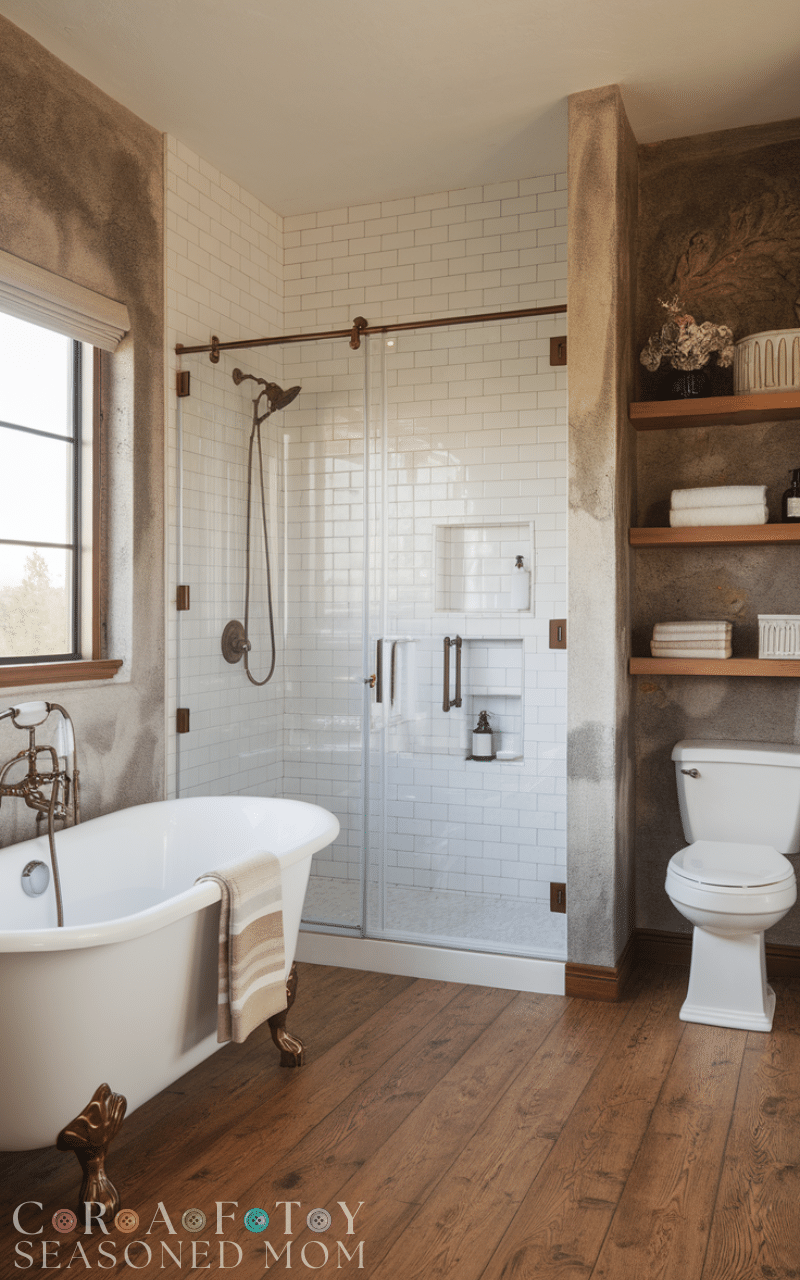 The heart of Modern Farmhouse Bathroom Decor Ideas lies in mixing old and new. Pair modern fixtures with vintage accessories, rustic wood with sleek surfaces, and classic designs with contemporary finishes. This balance creates a bathroom that feels curated, warm, and timeless, perfectly capturing the modern farmhouse spirit.