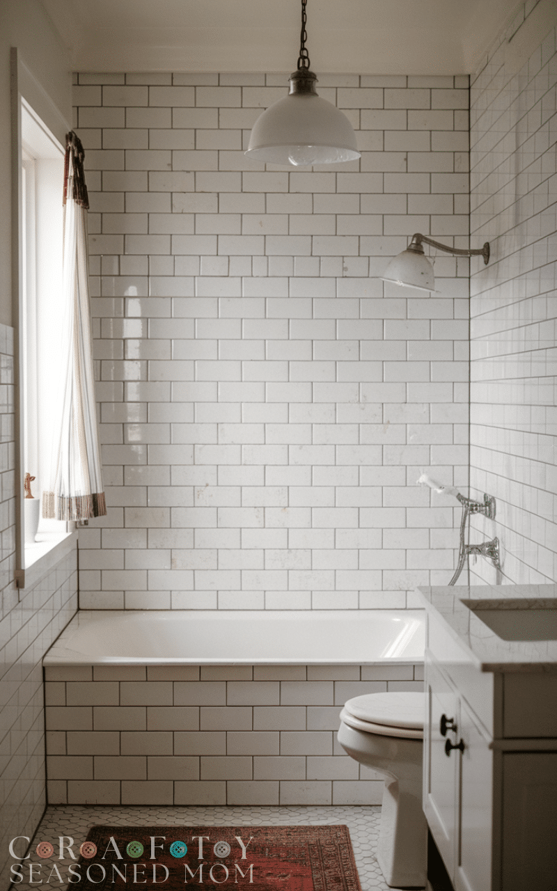 Subway tile remains a favorite in Modern Farmhouse Bathroom Decor Ideas. Classic white subway tiles offer a clean, timeless look, while modern layouts like vertical stacking or dark grout add a contemporary edge.