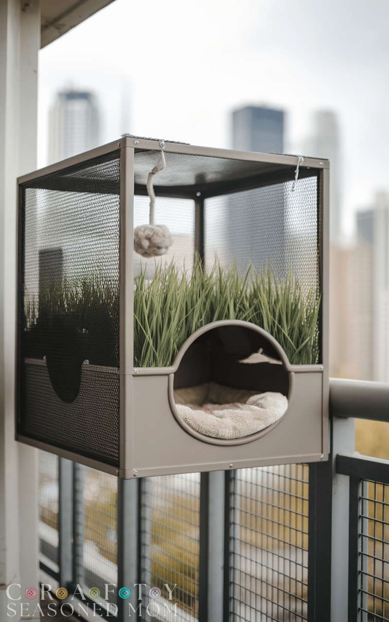 If you live in an apartment, balcony cat enclosures are an ideal outdoor cat enclosure idea. These specially designed cages attach to your balcony railing, creating a secure space where your cat can enjoy sunshine and fresh air safely. Balcony cat enclosures can include hanging toys, cat grass, and cozy resting spots, giving your feline friend a mini outdoor adventure. They are perfect for city dwellers who want to provide outdoor time without the risk of wandering cats, combining safety, enrichment, and practicality in one smart design.