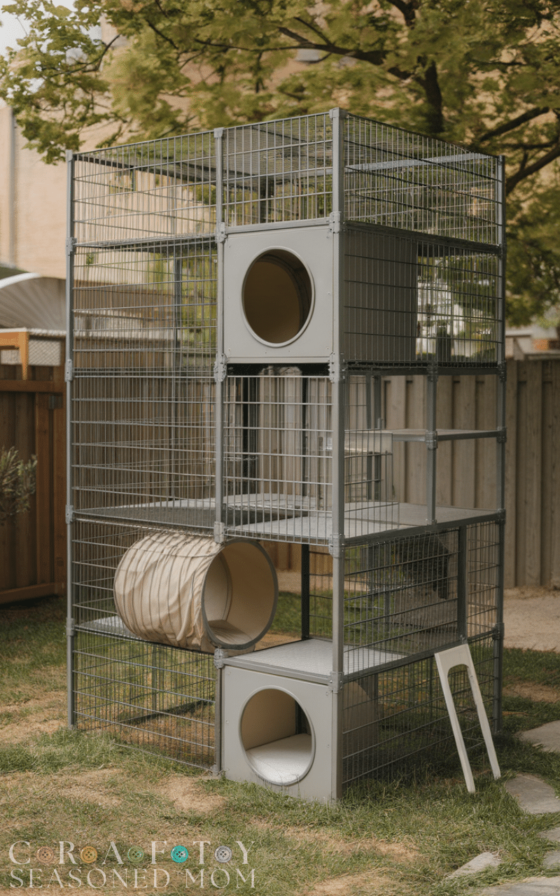 Modular catios are one of the best outdoor cat enclosure ideas because they allow you to build a customizable space for your cats. You can add tunnels, shelves, and even multiple levels depending on your backyard size. Modular designs are perfect for adjusting as your cat’s needs change, and they give your pets plenty of fresh air while keeping them safe from predators. With a modular outdoor cat enclosure, your cats can explore different sections without risking escape, making it both fun and practical for any cat-loving household.