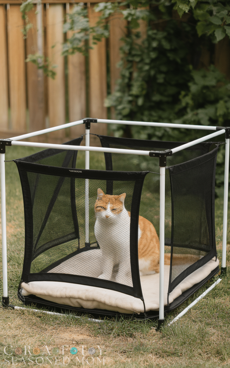 Portable cat playpens are a flexible outdoor cat enclosure idea for families who want temporary setups or travel-friendly solutions. These lightweight enclosures are easy to fold, move, and set up anywhere in your yard or patio, giving cats a safe outdoor experience. Portable playpens are ideal for supervised play, introducing cats to nature gradually, or creating an extra play area during gatherings. This outdoor cat enclosure option combines convenience with safety, making it a practical choice for those who want to enrich their cat’s outdoor life without a permanent installation.