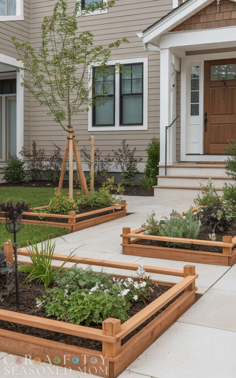 Using vertical garden walls can be a creative solution for simple front yard landscaping because they save space and provide greenery where horizontal space is limited and you can hang planters or build modular wall gardens with colorful flowers or small shrubs and vertical gardens add texture and height and draw attention and they are perfect for homes with small yards or tight front areas and this technique turns unused walls into beautiful features and it contributes to eco-friendly simple front yard landscaping while keeping maintenance easy and it adds uniqueness to the overall appearance.