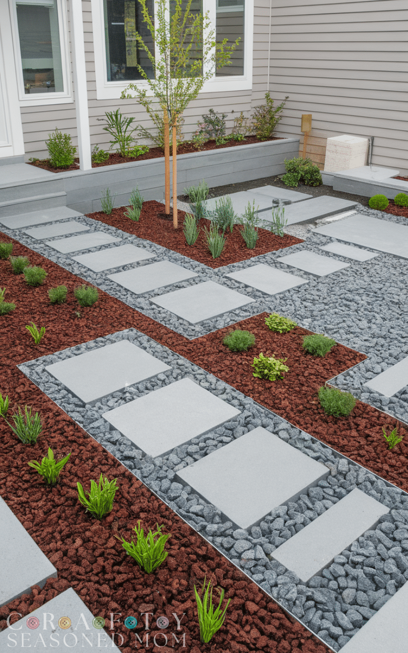 Incorporating decorative gravel areas can improve simple front yard landscaping because gravel adds texture and a clean look and it is low maintenance and can be used to define zones in your yard or as a base for plants and outdoor seating areas and gravel works well with stepping stones or pavers to create a modern and simple feel and you can also choose colored gravel to match your home exterior or garden theme and it is an excellent choice for those who want simple front yard landscaping that is practical and stylish and it prevents weeds and enhances overall yard aesthetics.
