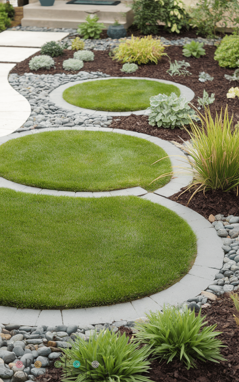 Maintaining small lawn patches works well in simple front yard landscaping since they provide open green spaces for relaxation and play and require less water and upkeep than a full lawn and using compact and curved shapes adds softness and visual flow to the yard and small lawns can be bordered with plants or stones for added beauty and they create a balance between greenery and hardscape and small lawn patches allow you to enjoy nature and make simple front yard landscaping feel spacious and fresh while remaining easy to maintain and aesthetically pleasing.