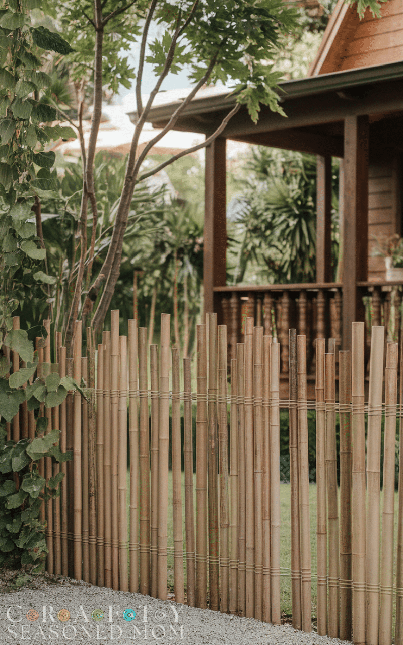 Bamboo fencing is an eco-friendly and affordable option. This backyard privacy fence idea adds a relaxed, tropical vibe while providing effective screening. It’s lightweight, easy to install, and great for quick privacy upgrades.