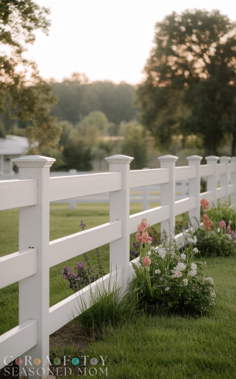 Vinyl fencing is low-maintenance and long-lasting. This backyard privacy fence idea is perfect if you want consistent privacy without painting or staining. It resists weather damage and keeps your yard looking clean year-round.
