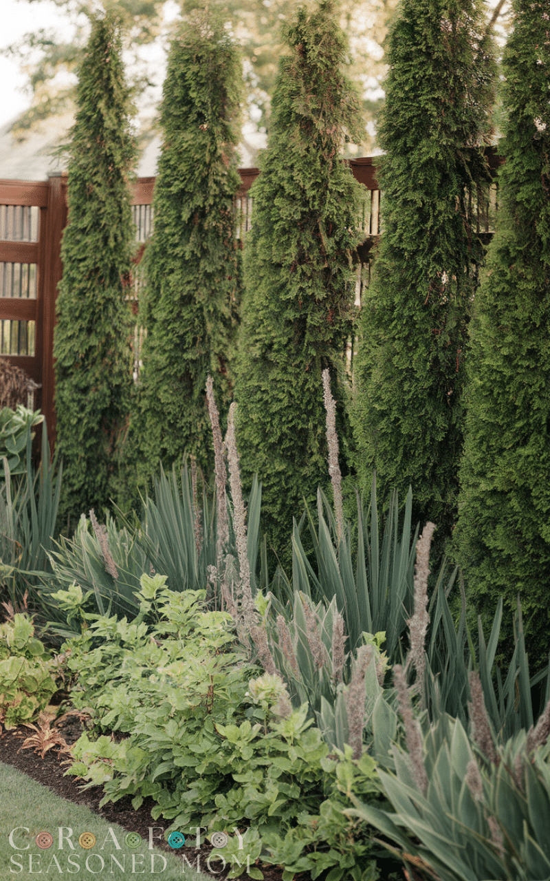 Using hedges, shrubs, or tall plants creates a natural barrier. This backyard privacy fence idea blends seamlessly into landscaping while adding texture and seasonal beauty. It’s perfect for softening hard edges.
