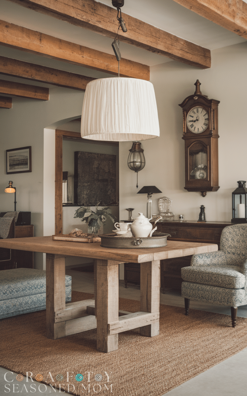 Exposed beams—whether structural or decorative—bring depth and charm overhead. Even lightweight faux beams can create the same visual warmth without major renovation. They help establish a sense of history that complements both vintage and modern accents.