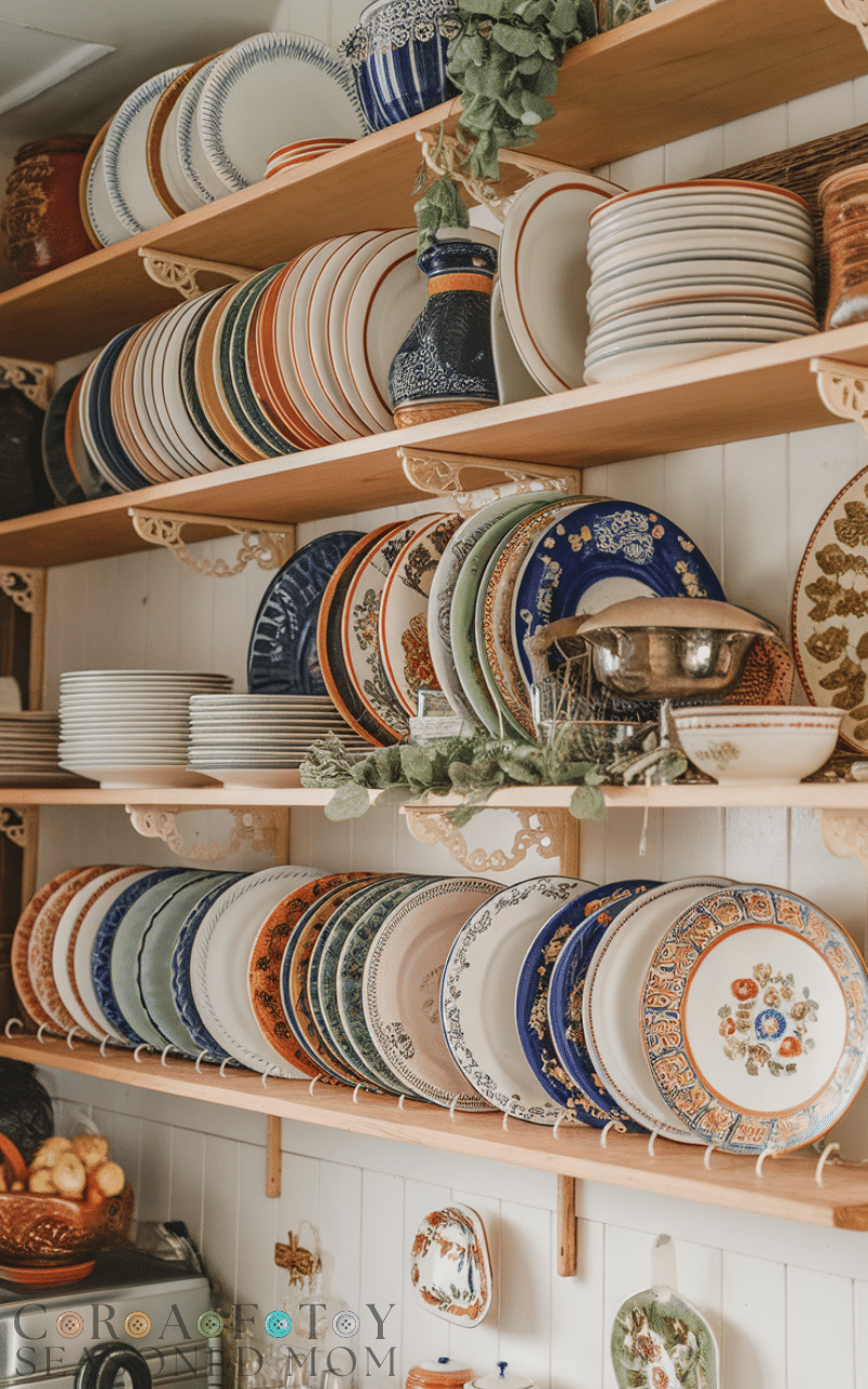 Open plate racks improve your kitchen cabinet decor by turning everyday dishes into decorative features because displaying plates vertically adds dimension and texture to the space while keeping them easy to access and coordinating plate colors or patterns creates a curated look and adding decorative elements like greenery or small jars enhances charm which makes your kitchen cabinet decor inviting and visually appealing.