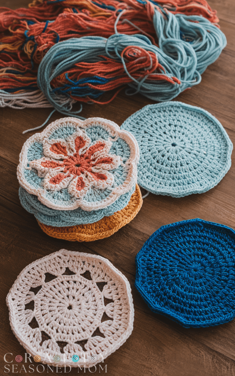 Crochet coasters are practical and decorative easy crochet gifts that can suit anyone’s taste because you can play with colors and patterns to match their home style. They protect tables from heat and water rings and also add a cozy handmade touch to the décor. This project uses very little yarn so you can make a full set in just one evening and wrap them beautifully for a charming handmade present that looks like it came from a boutique.