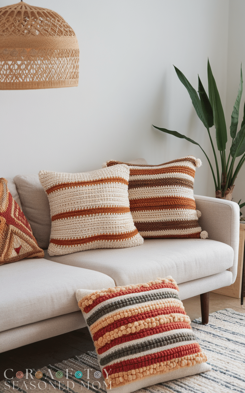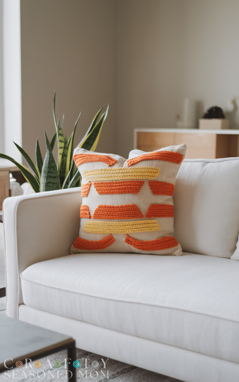 Color blocking is a fun and modern approach within these 15 ideas for crochet pillows. By combining two or three solid colors, you create a bold yet simple design. This style is great for beginners who want a clean look without complicated patterns. Color block crochet pillows are versatile and can easily match or refresh existing décor by changing just the color palette.