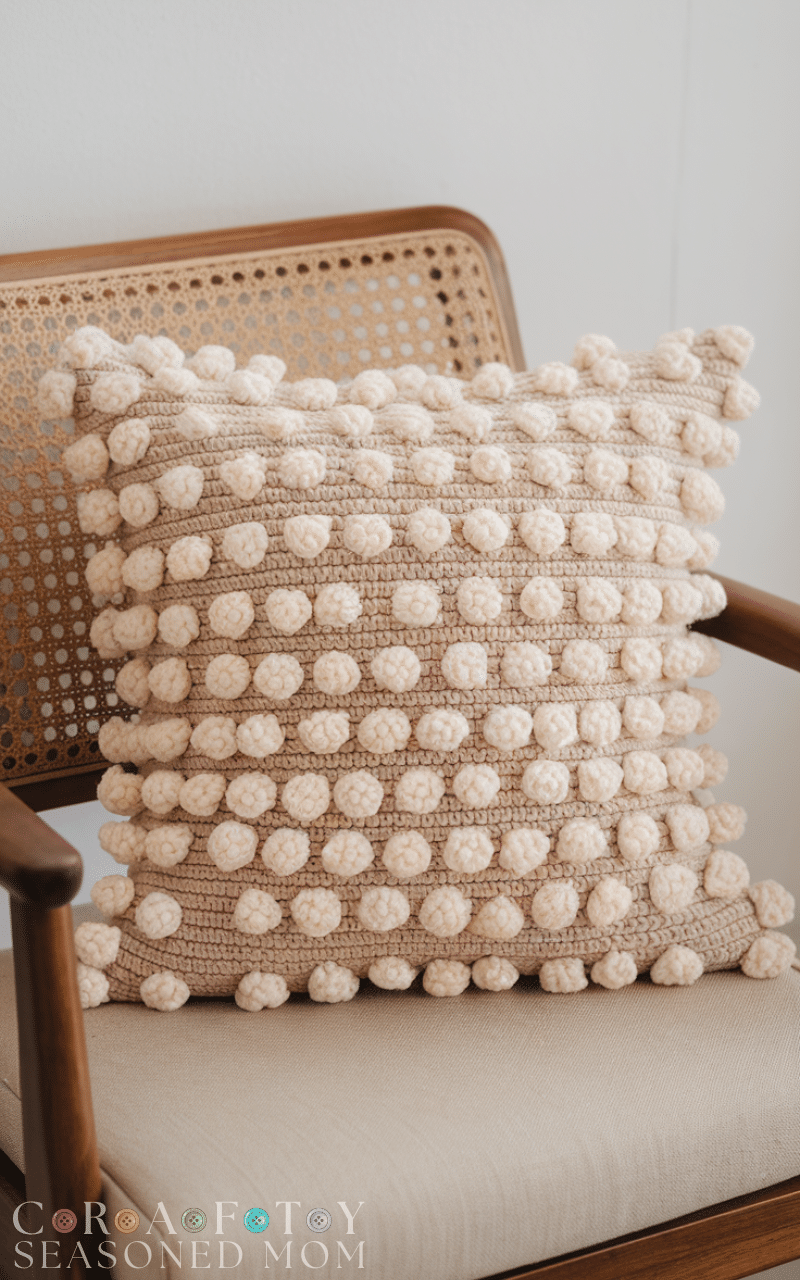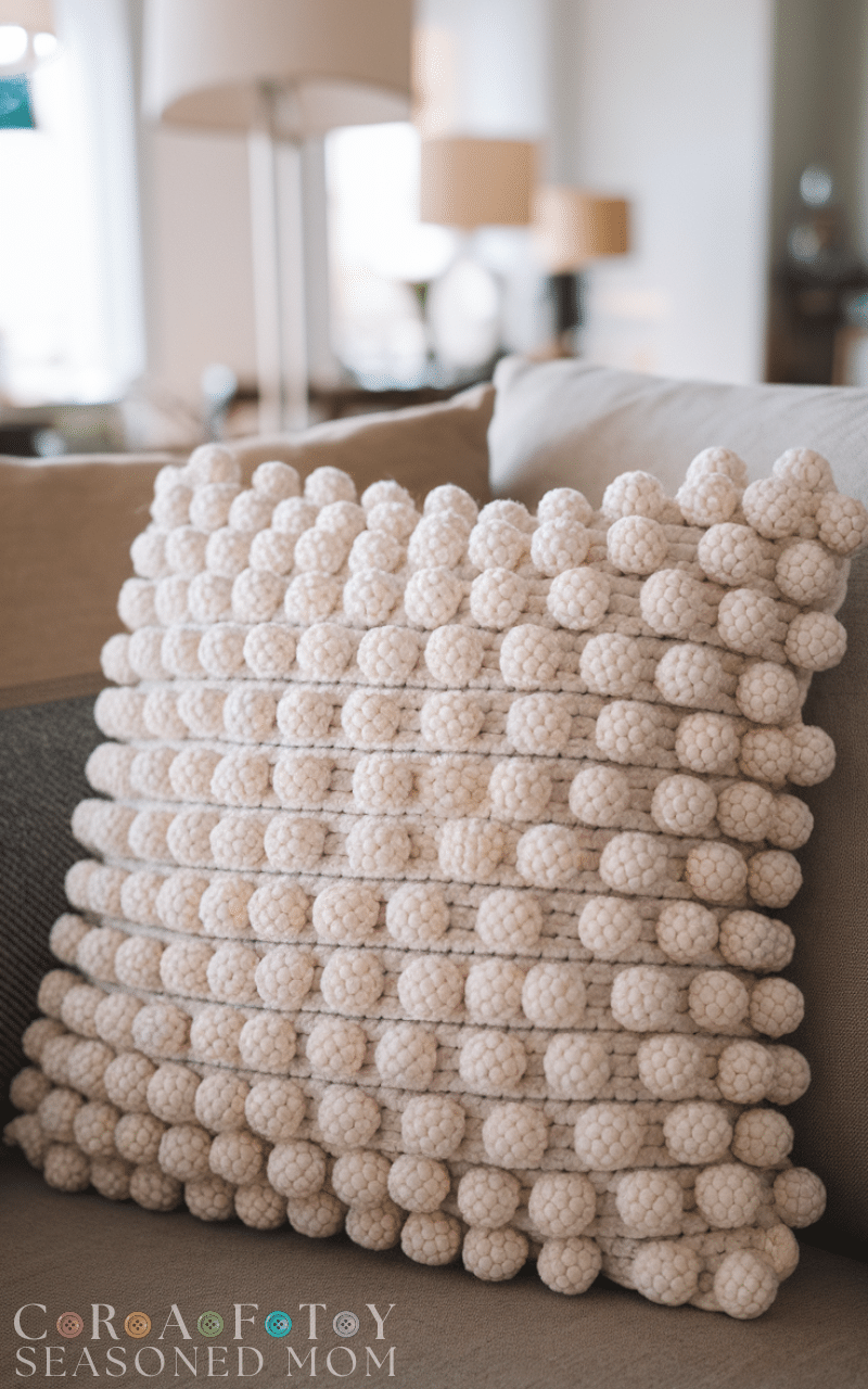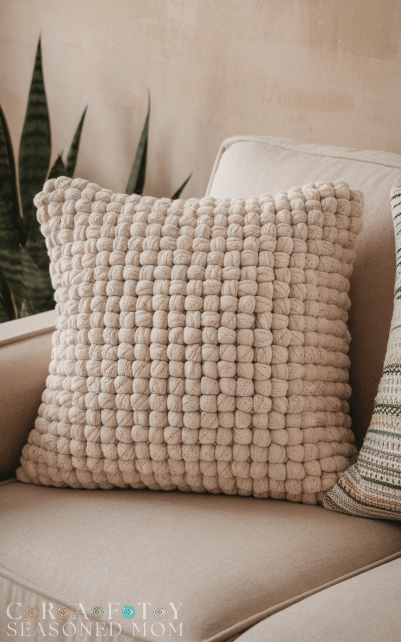 11. Textured Bobble Stitch Crochet Pillow