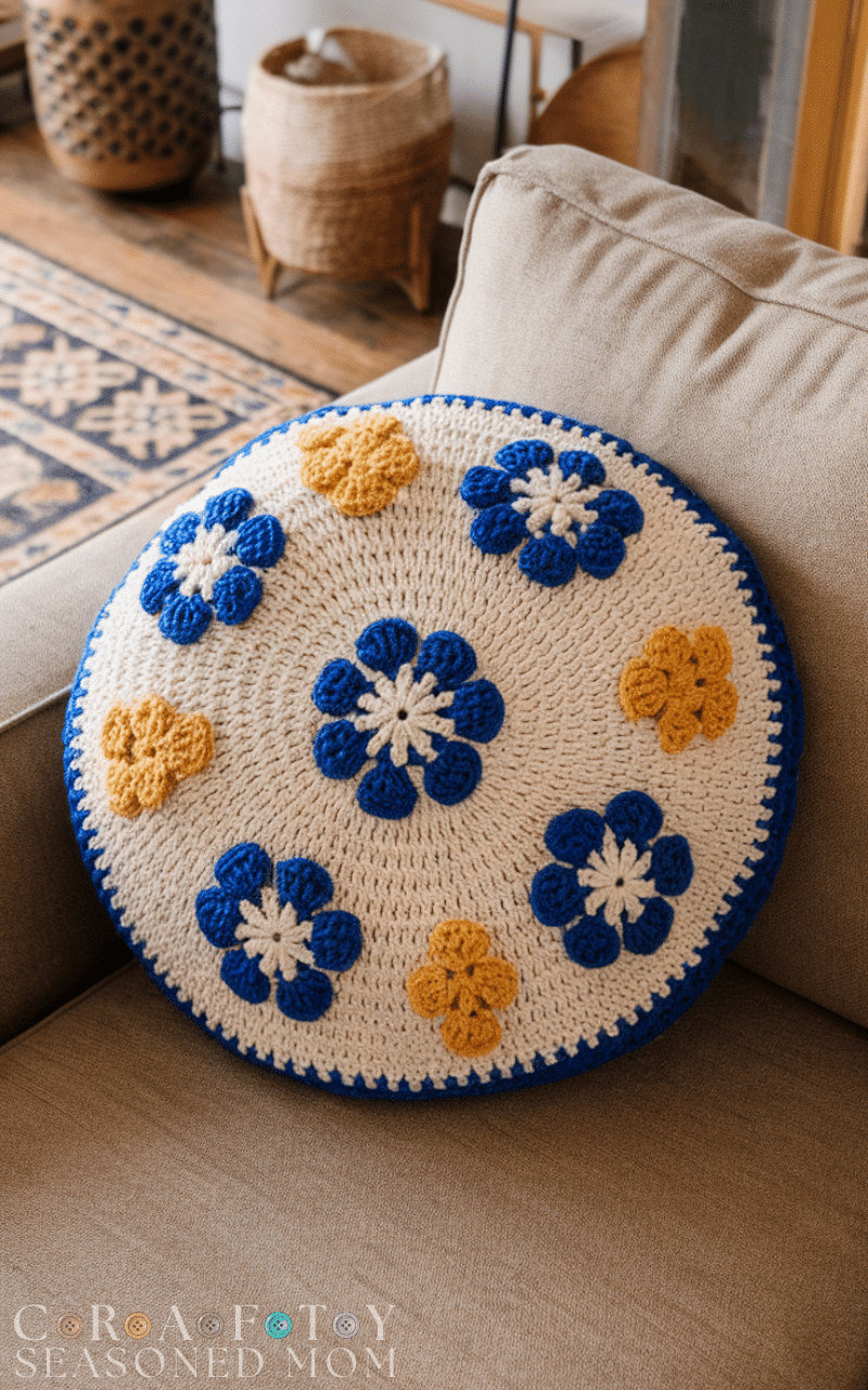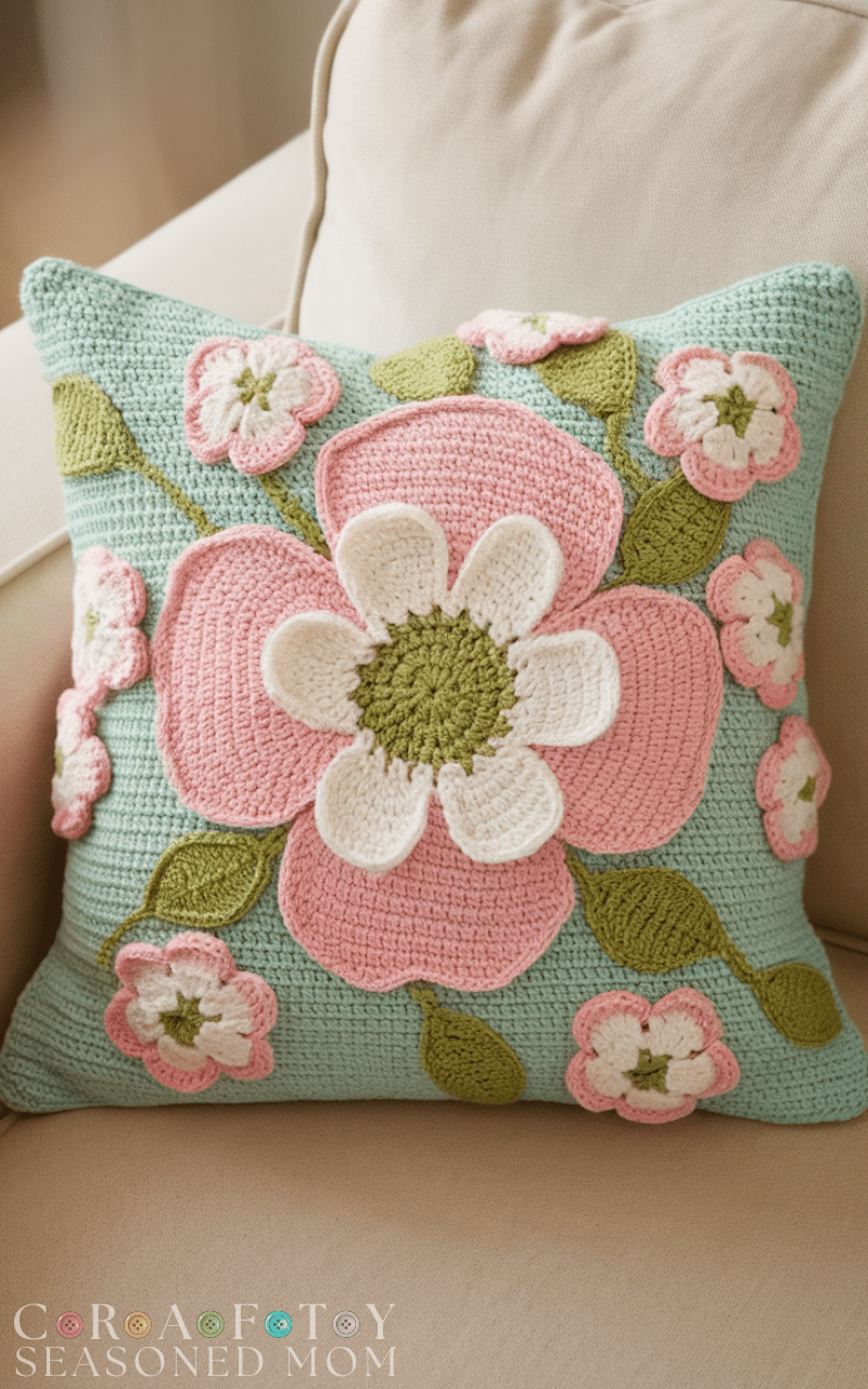 12. Floral Crochet Pillow