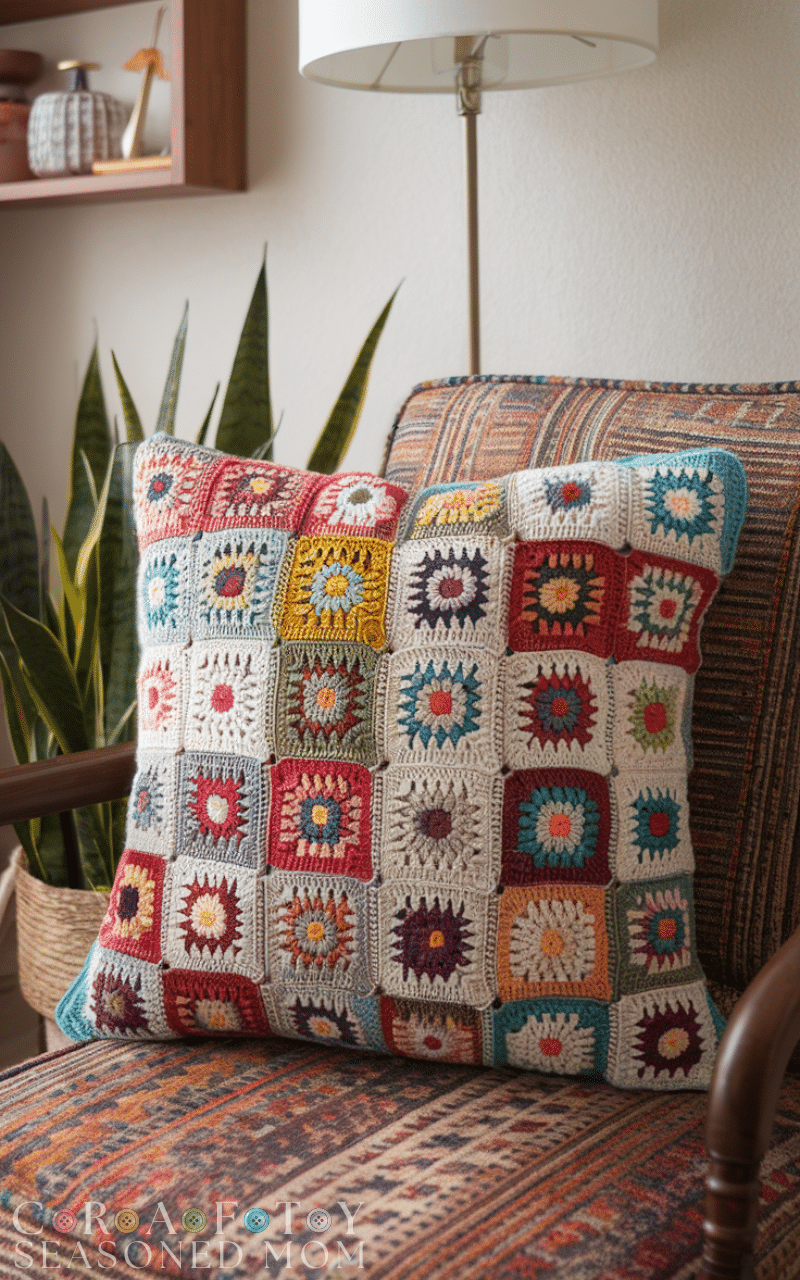 4. Patchwork Crochet Pillow