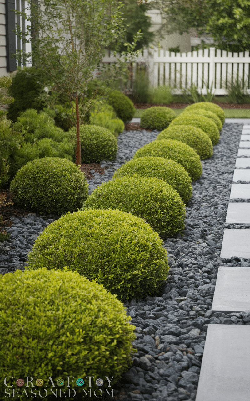 The ultimate solution for a low-maintenance and aesthetically pleasing front space is to favor “useful” greenery over a purely stone landscape. Rather than planting deep-rooted trees directly into the gravel, which could eventually seek out moisture near your concrete, use potted plants or shallow-rooted perennials to add visual interest without the risk.