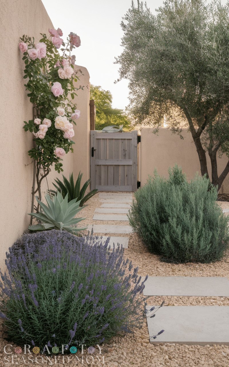 Choosing a plant palette that is drought-tolerant supports your mediterranean backyard ideas and ensures the garden remains low-maintenance and resilient. Plants like lavender rosemary succulents and olive trees thrive in sun and dry soil and reflect the natural landscape of Mediterranean climates. Focus on texture and foliage colours rather than lush green lawns to stay true to the style.