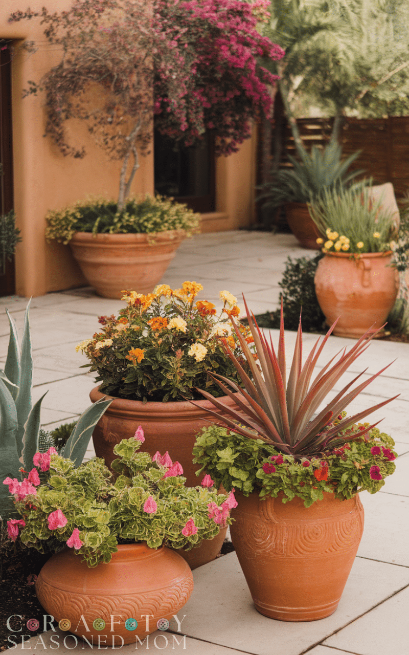 Using terracotta pots filled with vibrant plants adds character to your mediterranean backyard ideas and gives you flexibility in layout and styling. Group oversized pots with colourful blooms and textured foliage around entrances patios and seating areas to create visual interest. Since terracotta is porous it also blends naturally with the hardscape and plant palette typical of Mediterranean gardens.