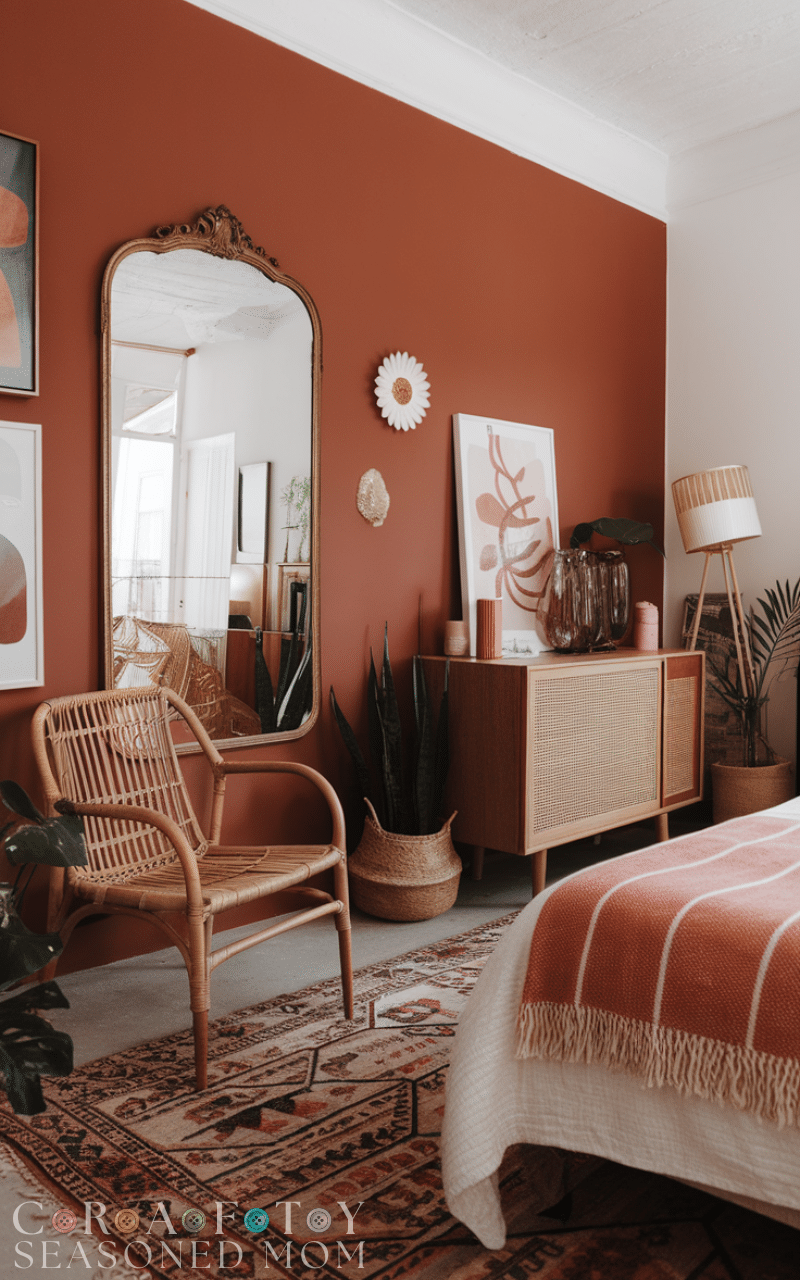 Terracotta is warm and earthy, offering a cozy twist on traditional paint colors for bedrooms. This rich, clay-inspired shade creates a comforting and grounded atmosphere. It pairs beautifully with natural materials like rattan, linen, and wood. Terracotta adds depth and character, especially in bohemian or Mediterranean-inspired bedrooms. If you want your space to feel warm and inviting, this is one of the bold yet welcoming paint colors for bedrooms to consider.
