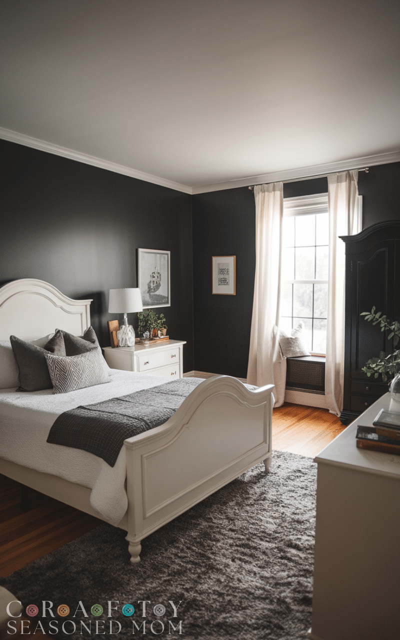 Charcoal gray is dramatic and stylish, perfect for those who want bold paint colors for bedrooms. This deep neutral adds sophistication and makes lighter furniture stand out beautifully. When balanced with soft textures like plush rugs and white bedding, charcoal creates a cozy and intimate feel. It works especially well in larger rooms with plenty of natural light. If you want a modern and elegant look, charcoal gray is one of the most impactful paint colors for bedrooms you can choose.