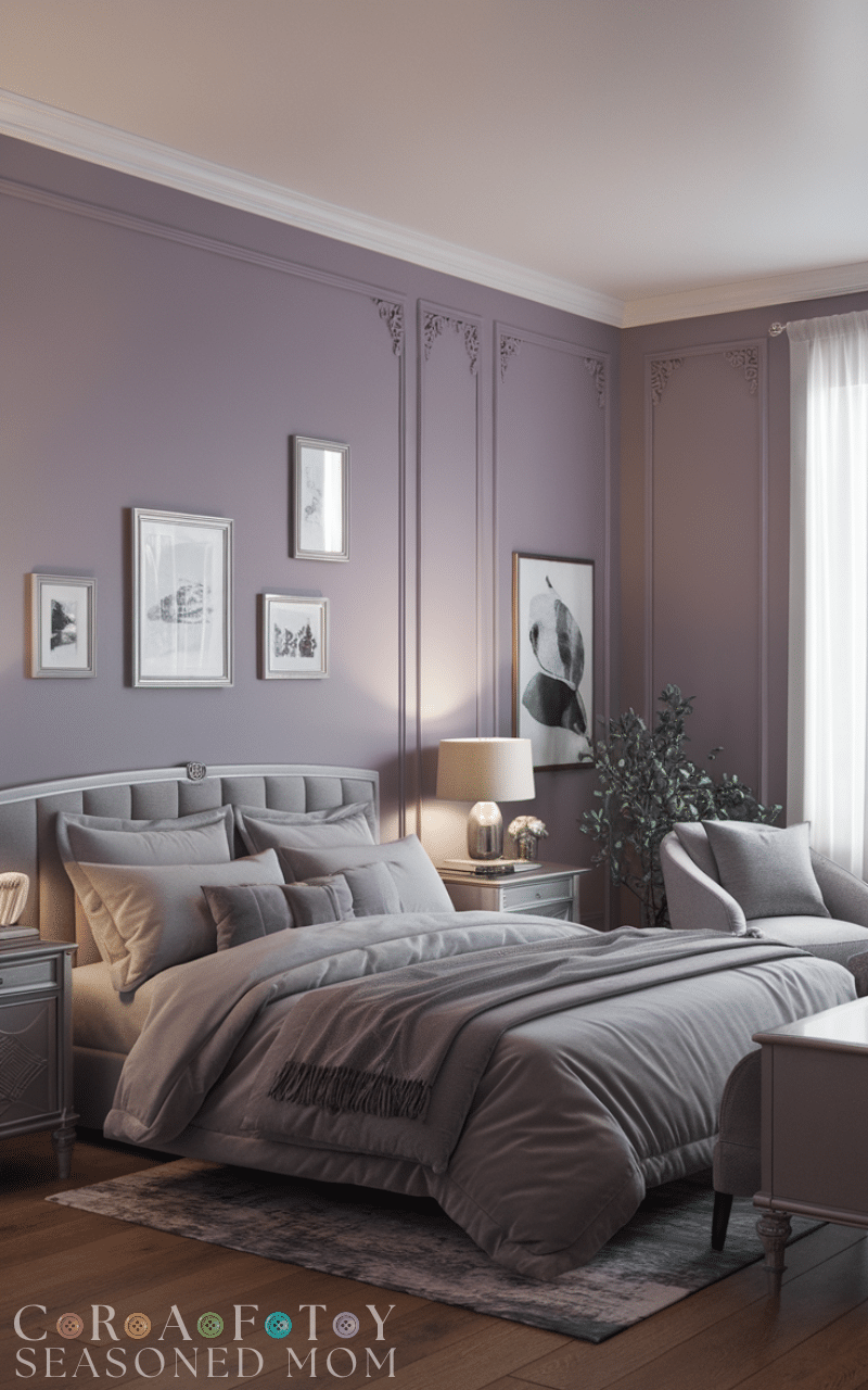 Dusty lavender brings a soft touch of color while keeping the space serene, making it one of the most unique paint colors for bedrooms. This muted purple tone feels elegant and relaxing without being too bold. It pairs wonderfully with gray bedding, silver accents, and soft lighting. Lavender is known for its calming effect, which makes it ideal for a sleep-friendly environment. Among creative paint colors for bedrooms, dusty lavender offers personality while still maintaining a gentle and peaceful mood.