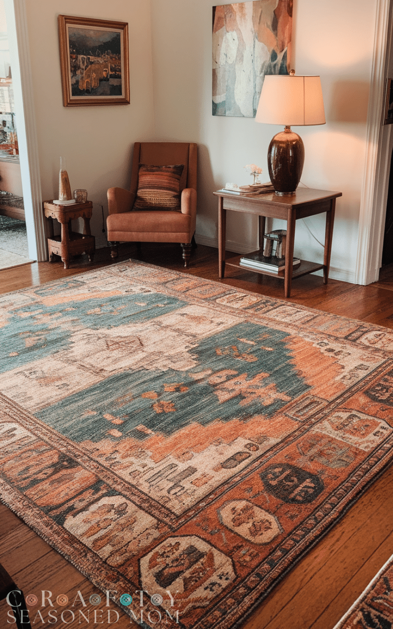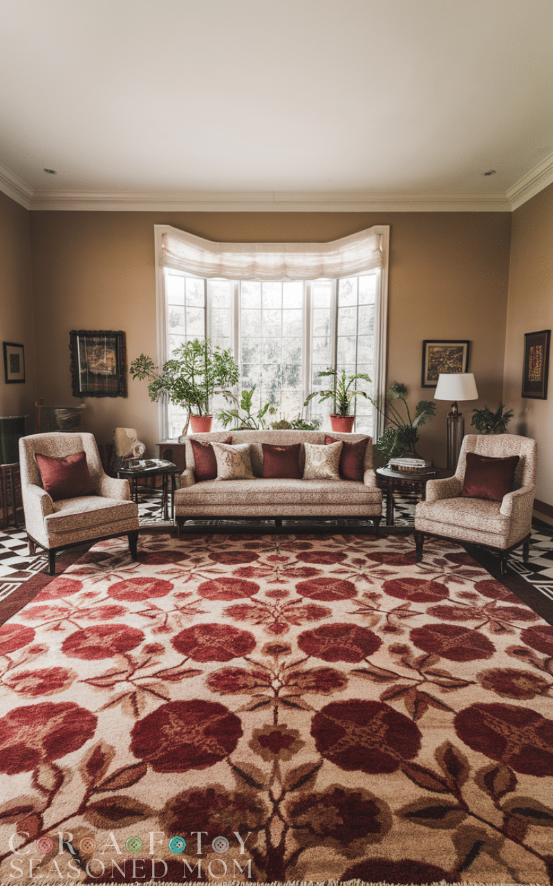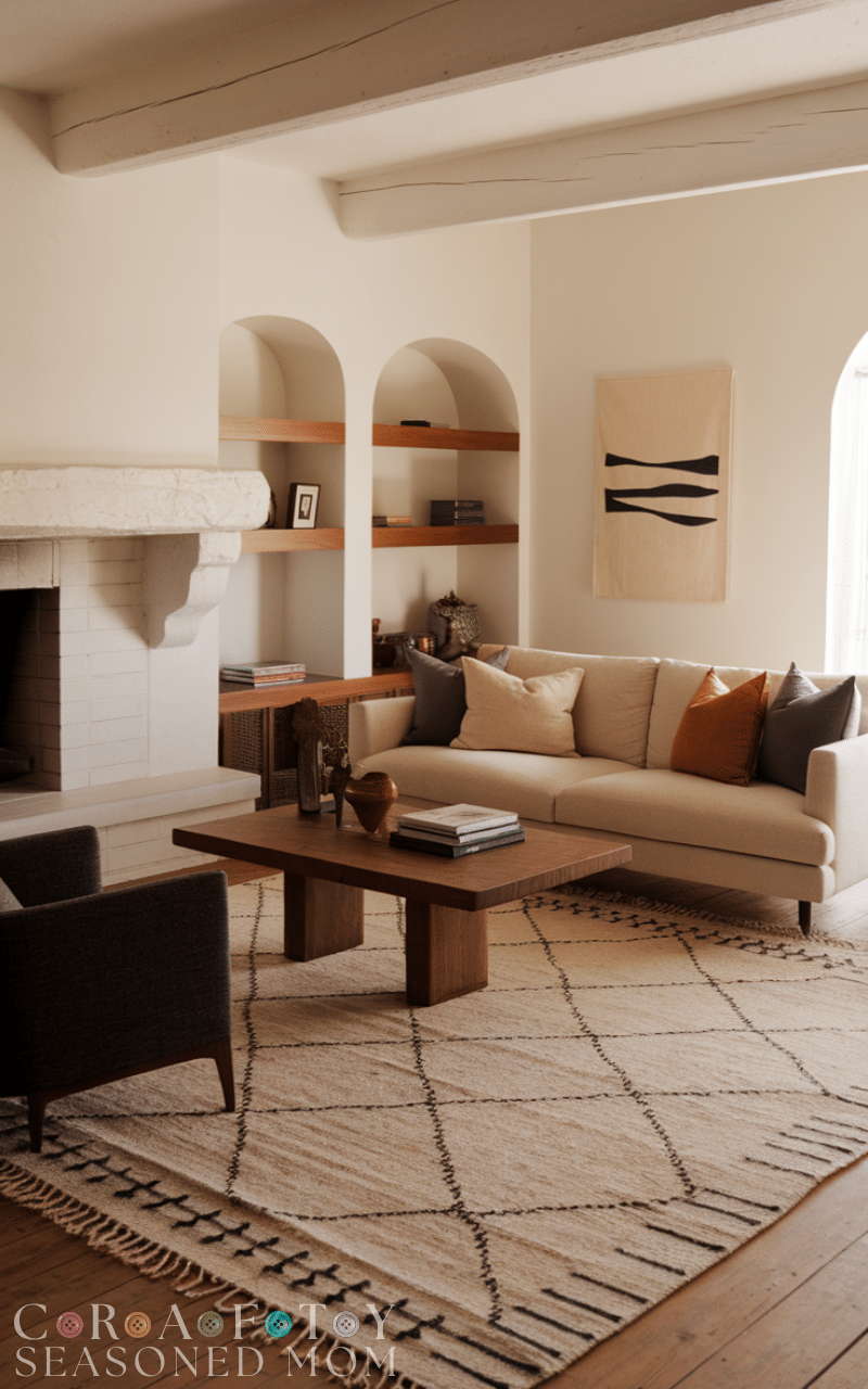 In larger spaces, avoid pushing rugs directly against walls. Floating the rug slightly inward makes the room feel more curated and intentional. These rug placement tips prevent the space from feeling too formal or stiff while maintaining elegance.