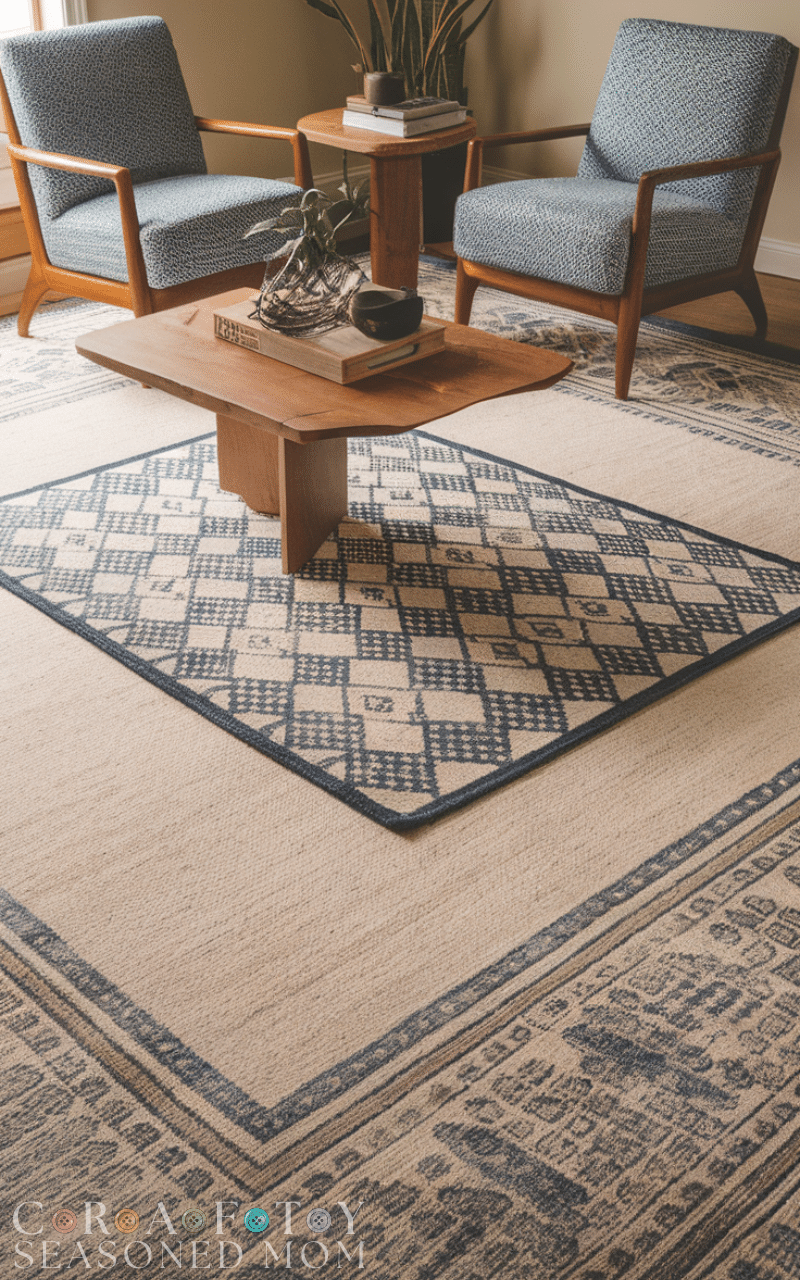 Layering is one of the trendiest rug placement tips. Place a smaller patterned rug over a larger neutral one to add depth and personality. This works especially well in living rooms and bedrooms. Layering creates visual interest and makes the space feel cozy without overwhelming it.