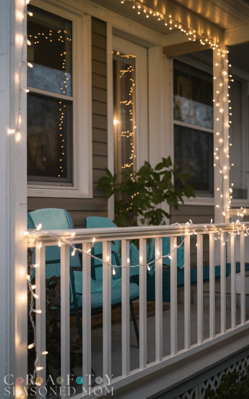 Lighting can transform any space and your small front porch is no exception. String lights are one of the simplest small front porch ideas to create warmth and magic. You can drape them along the railing or around the doorway to add a soft glow at night. Choose warm white lights for a cozy feel or colorful ones for a playful touch. This easy addition makes your evenings more enjoyable and your home more welcoming for guests.
