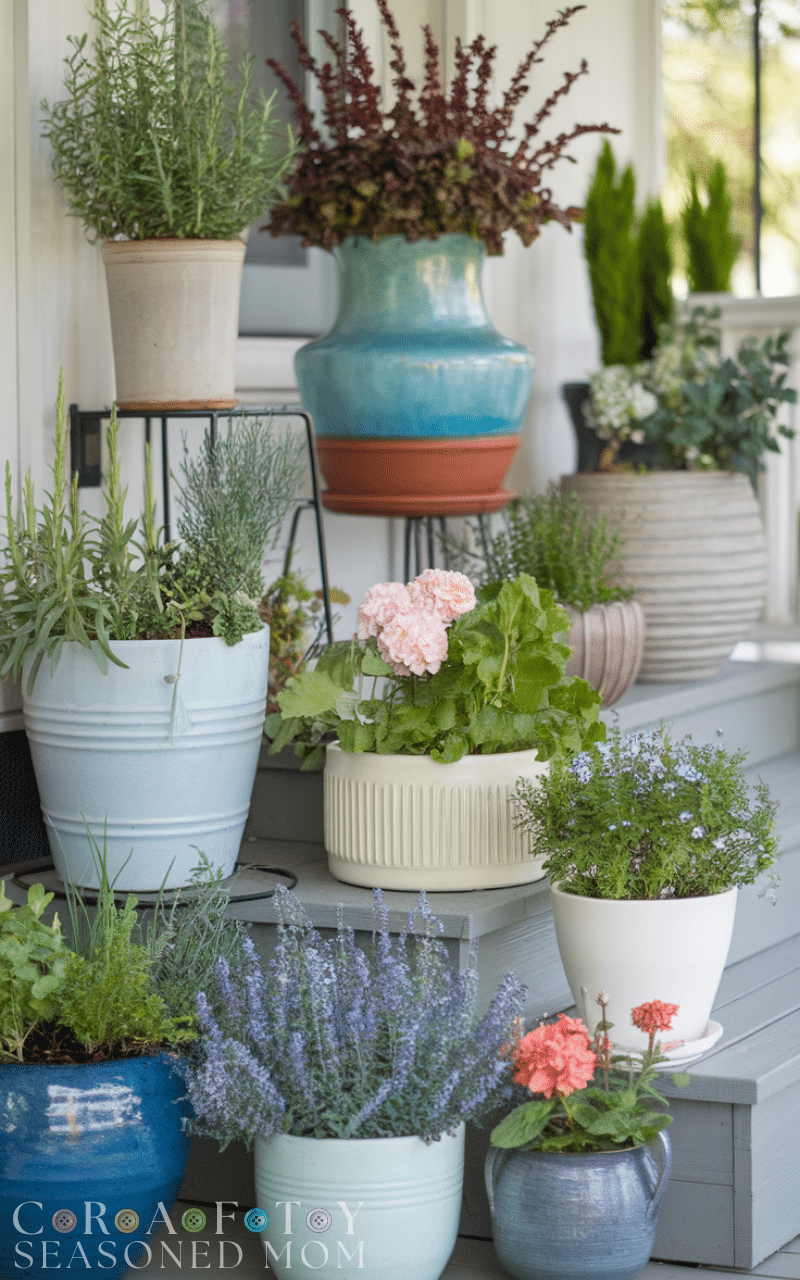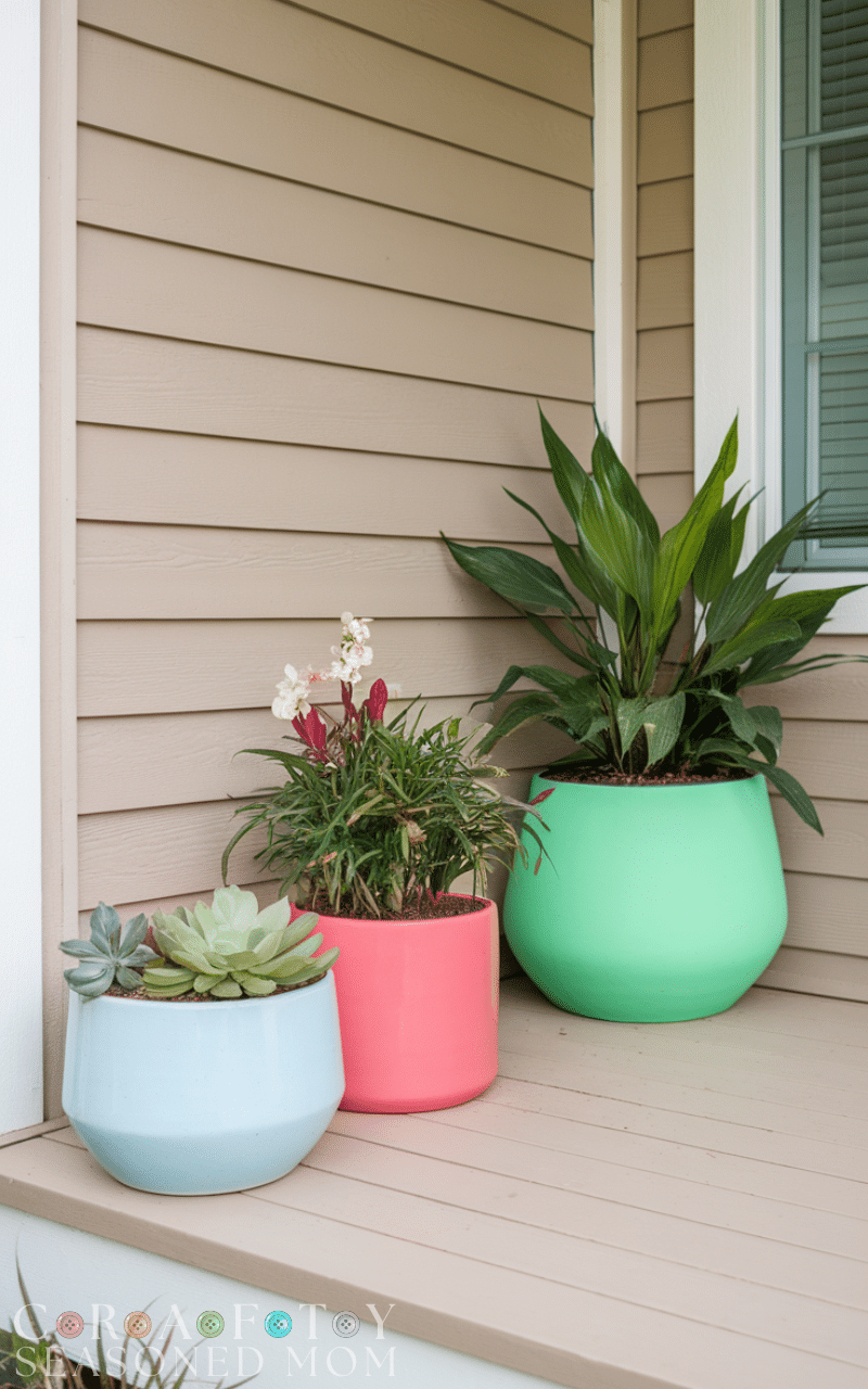 Planters are an easy way to add charm and personality to your porch. Choose bright colors that contrast beautifully with your home’s exterior for a cheerful look. This small front porch idea lets you play with different plant types from succulents to flowers that bloom through the seasons. It is simple affordable and adds life to your space while keeping the design balanced and fun.