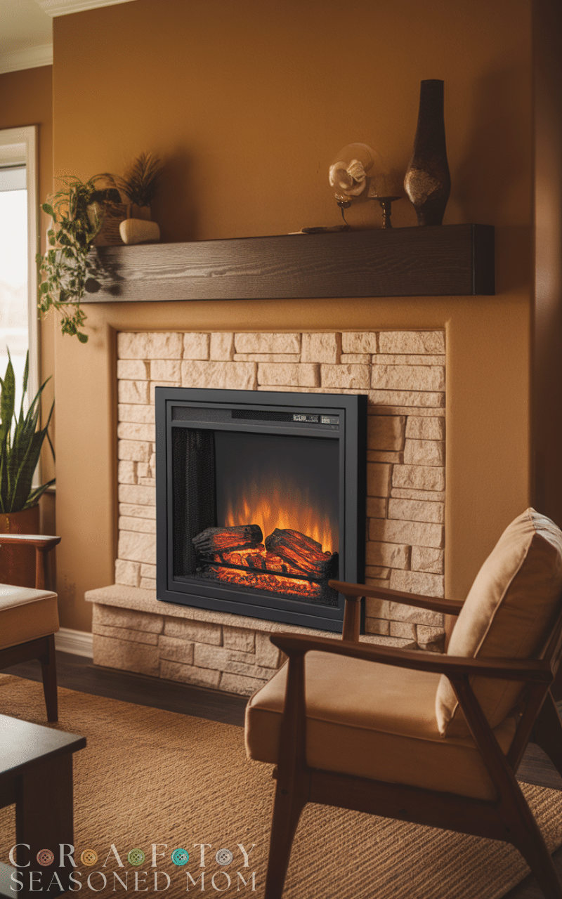 A fireplace instantly adds warmth and charm to any living room. If a real fireplace isn’t an option, use a faux electric fireplace or even candles arranged safely on a mantel or shelf. The flickering glow creates a cozy, inviting atmosphere. Adding a fireplace or faux fire is a classic cozy living room decor idea that transforms the mood without major renovations.
