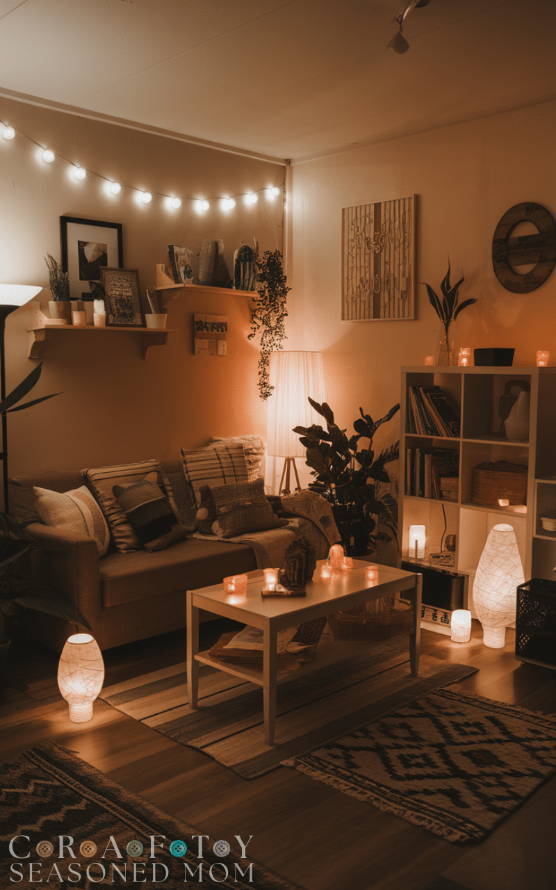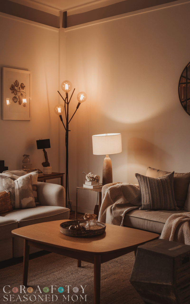 Soft lighting is key to a cozy living room. Incorporate table lamps, floor lamps, or string lights for a warm glow. Avoid harsh overhead lighting and opt for bulbs with warm tones. Lighting sets the mood, making your living room feel intimate and relaxing. Using ambient lighting is a simple and effective cozy living room decor idea that elevates comfort and atmosphere on a budget.