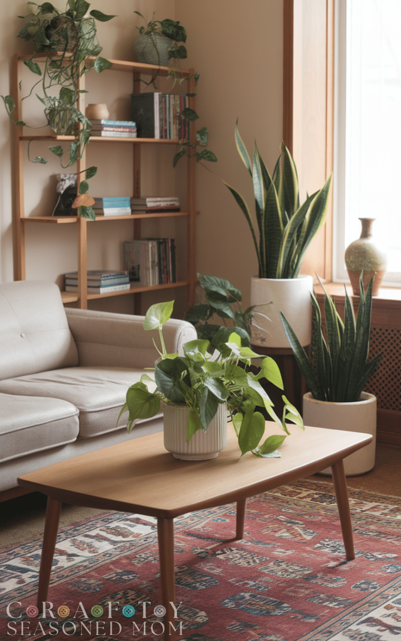 Adding greenery brings life and warmth to your living room. Choose low-maintenance plants like pothos, snake plants, or ferns for easy care. Plants improve air quality and create a relaxed, natural vibe. Indoor plants are a budget-friendly cozy living room decor idea that instantly softens and enlivens the space.