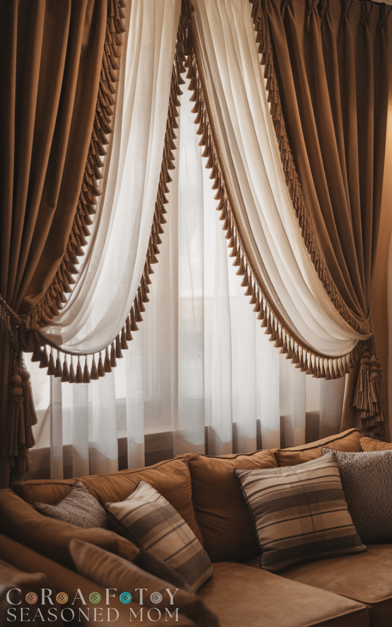 Use layered or textured curtains to soften windows and add warmth. Combine sheer panels with heavier drapes for light control and style. This enhances privacy and creates a cozy, intimate feel. Layered curtains are a simple and affordable cozy living room decor idea that improves both aesthetics and comfort.