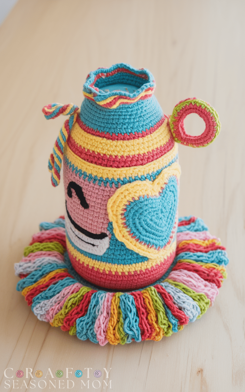 Bright and playful designs make this one of the most fun Crochet Water Bottle Holder Ideas. Using colorful yarn or stripes can make hydration exciting for kids. These holders are great for school, outings, or trips. You can customize colors based on a child’s preference, making it a thoughtful handmade accessory that is both useful and cheerful.