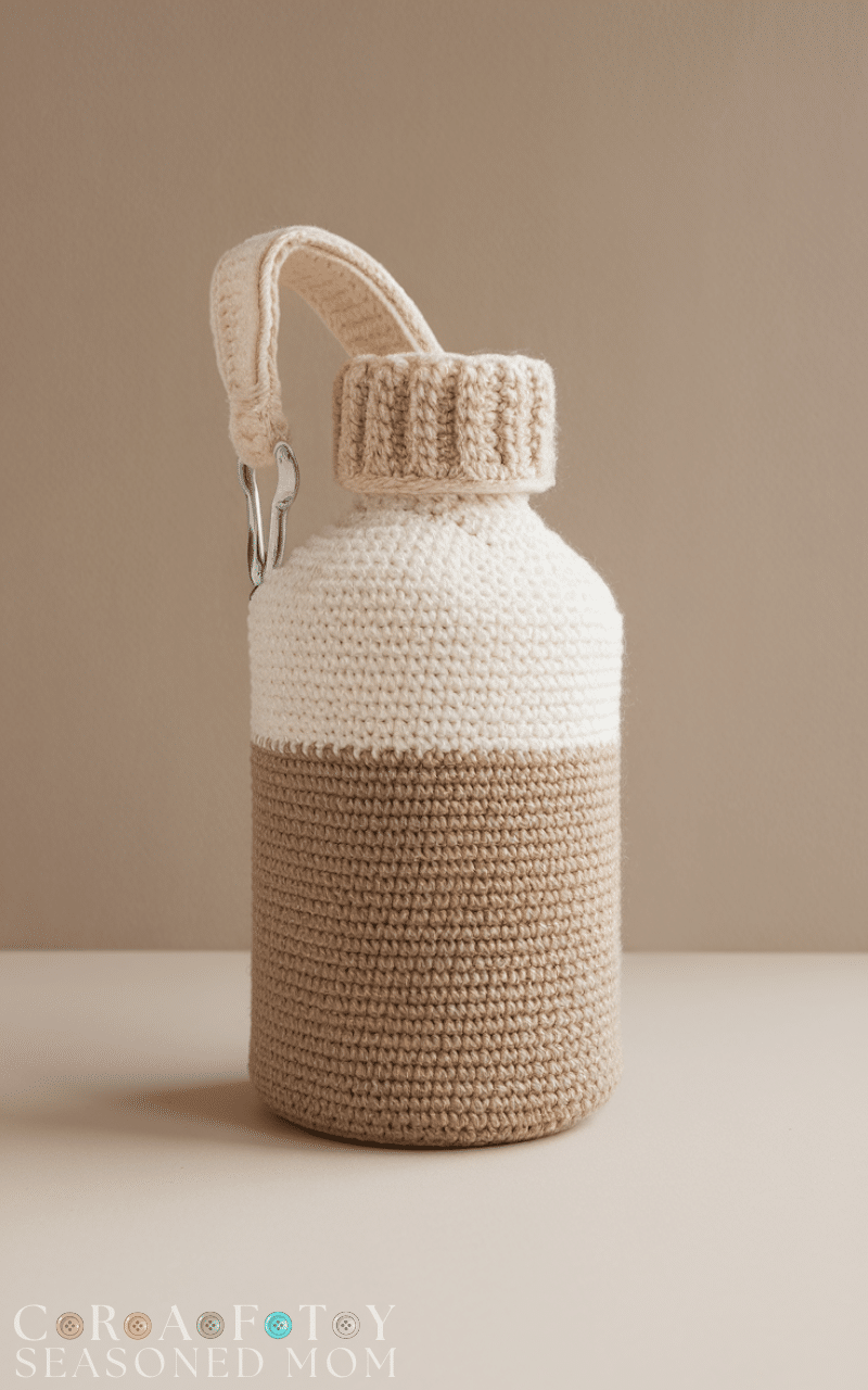 A minimalist holder focuses on clean lines and soft colors, making it one of the most elegant Crochet Water Bottle Holder Ideas. Neutral tones like beige, gray, or cream fit any outfit and lifestyle. This style is ideal for adults who prefer subtle accessories. The simplicity of this holder makes it timeless and easy to pair with bags or casual outfits.