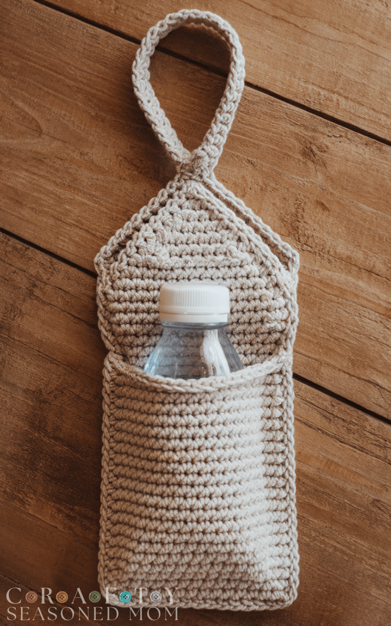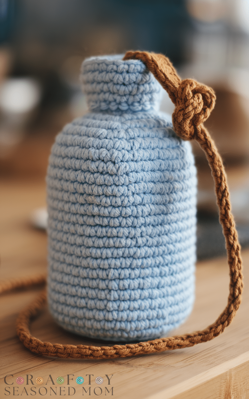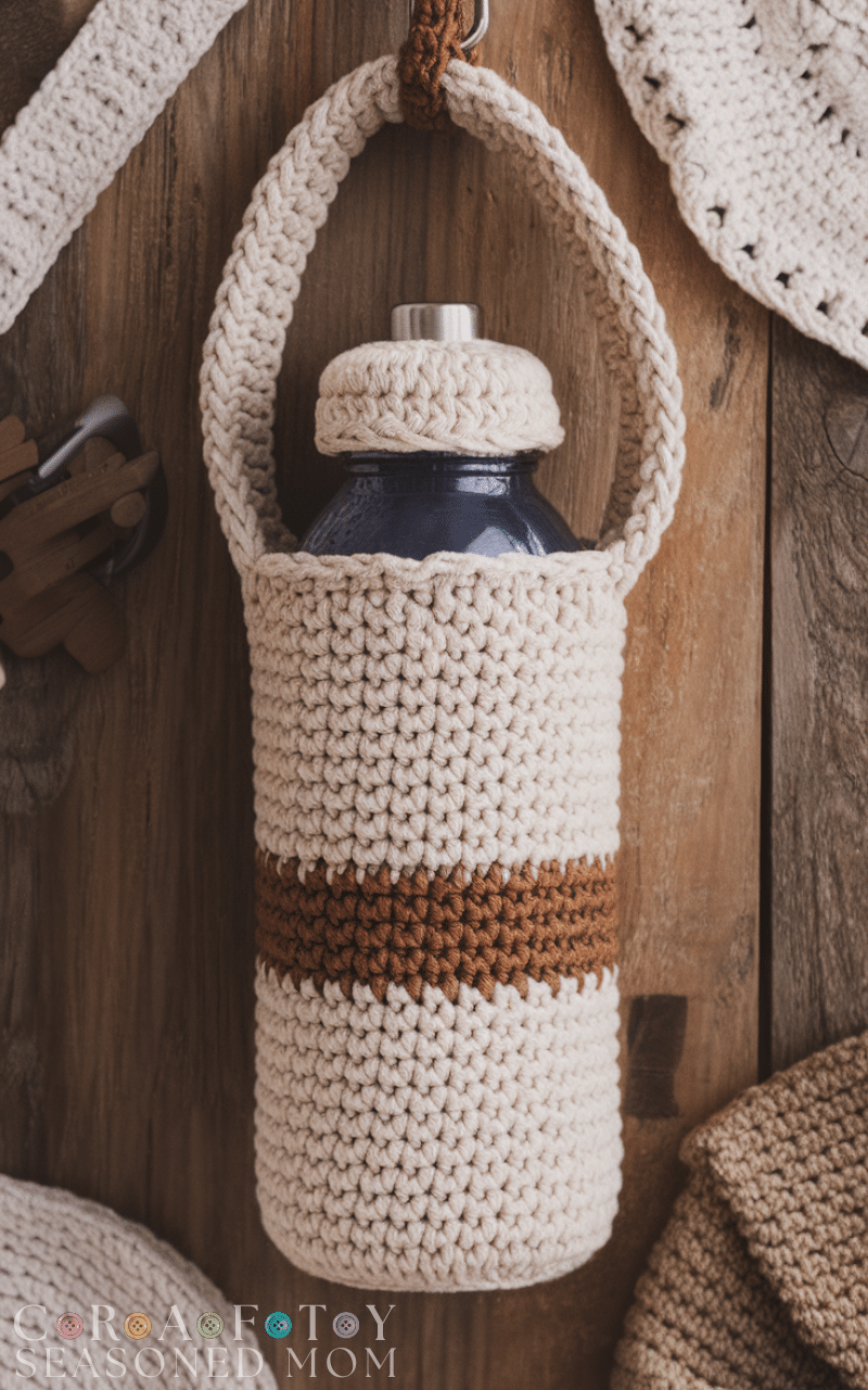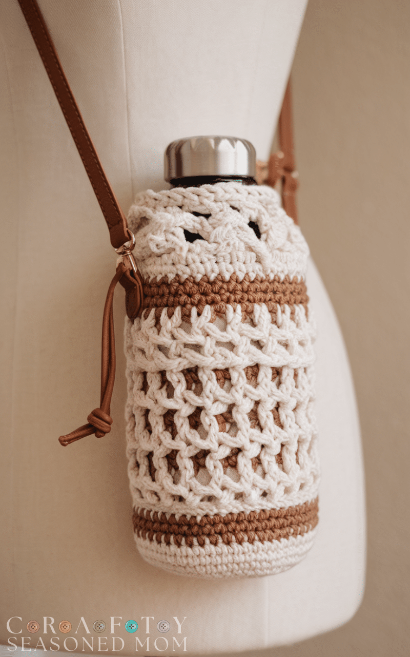 Travel-friendly designs are among the most practical Crochet Water Bottle Holder Ideas. These holders are compact, lightweight, and easy to pack. They’re ideal for vacations, day trips, or sightseeing. This idea focuses on comfort and convenience while keeping your bottle close at all times.