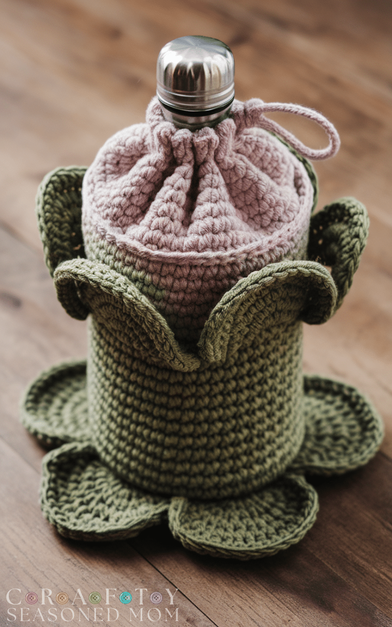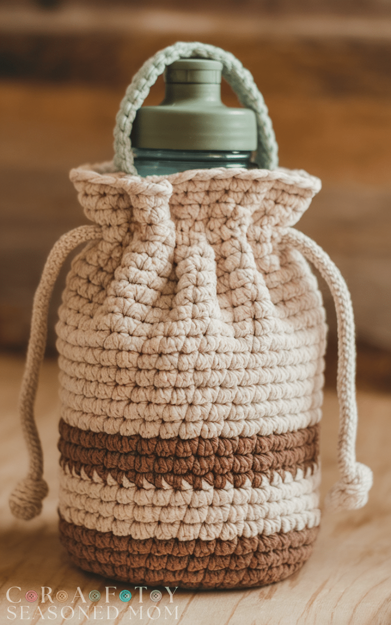 A drawstring top adds extra security to Crochet Water Bottle Holder Ideas. This feature helps keep the bottle from slipping out while walking or running. It’s a great choice for active lifestyles or travel. Drawstring designs also add a cute handmade touch that looks stylish and functional at the same time.