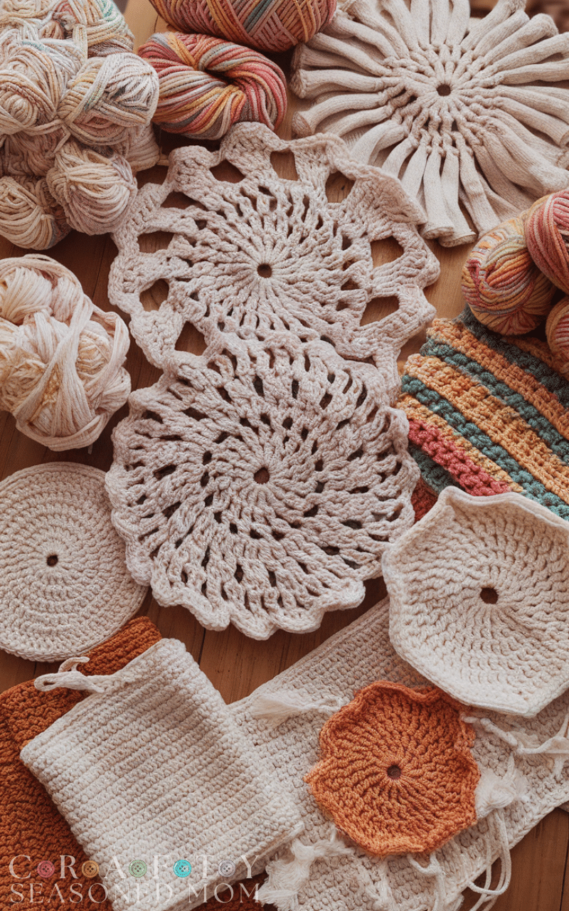Handmade crochet dishcloths and scrubbies are functional and eco-friendly crochet crafts to sell. They use inexpensive cotton yarn, are durable, and appeal to customers looking for sustainable alternatives to sponges. Patterns can be simple or textured, making them perfect for beginners. Selling them in sets increases value and makes them attractive for gifts.