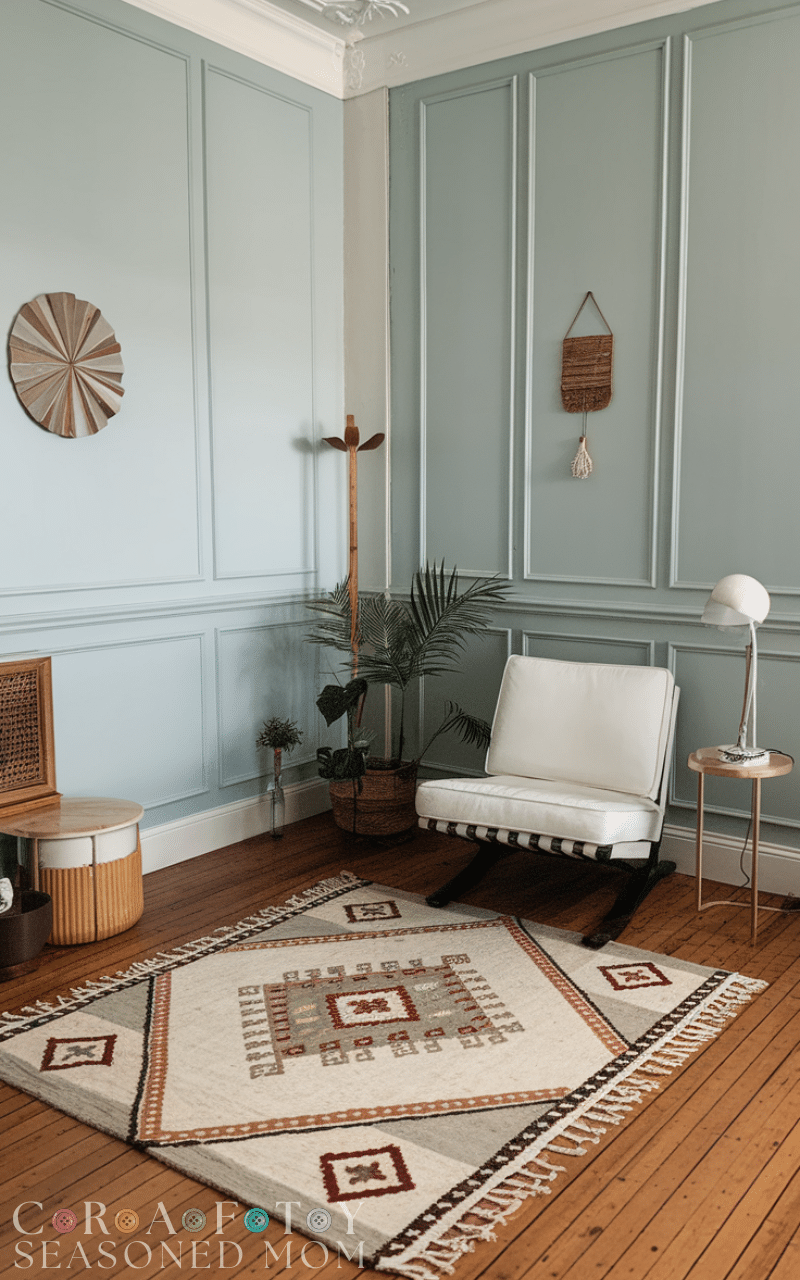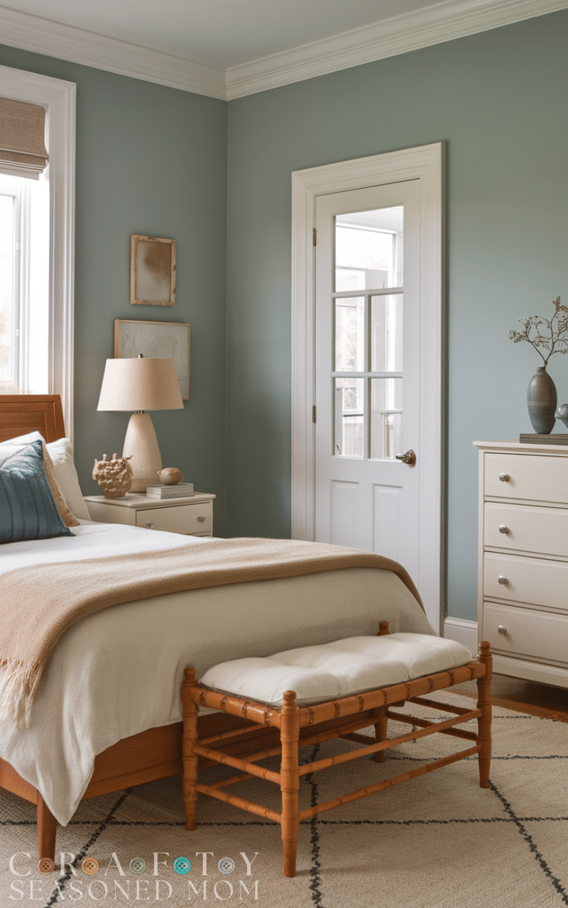 Muted blue is one of the more refreshing Paint Colors Honey Oak Pairs well with. Soft, dusty blues balance the warmth of the wood and create a peaceful atmosphere. This contrast helps tone down orange undertones while adding personality. It works beautifully in bedrooms or bathrooms, especially when paired with white trim and natural textures.