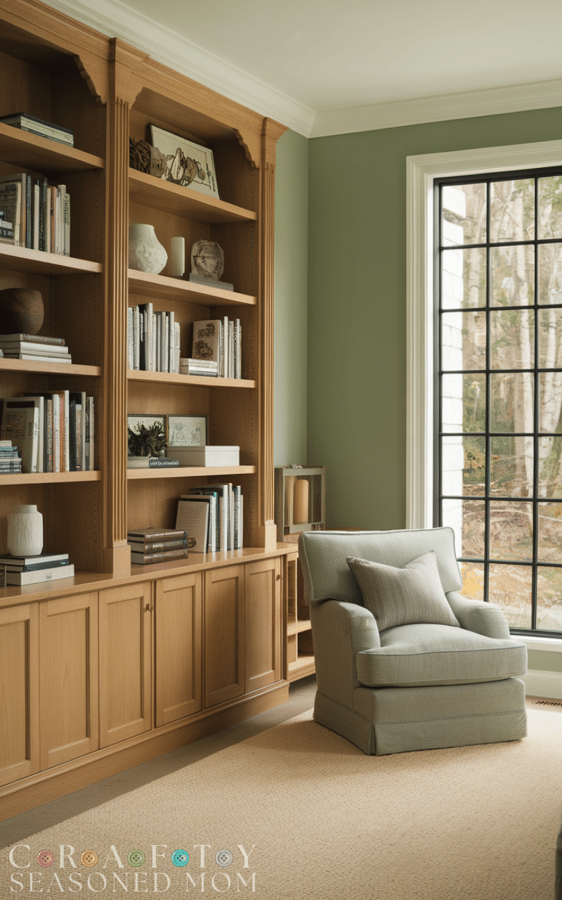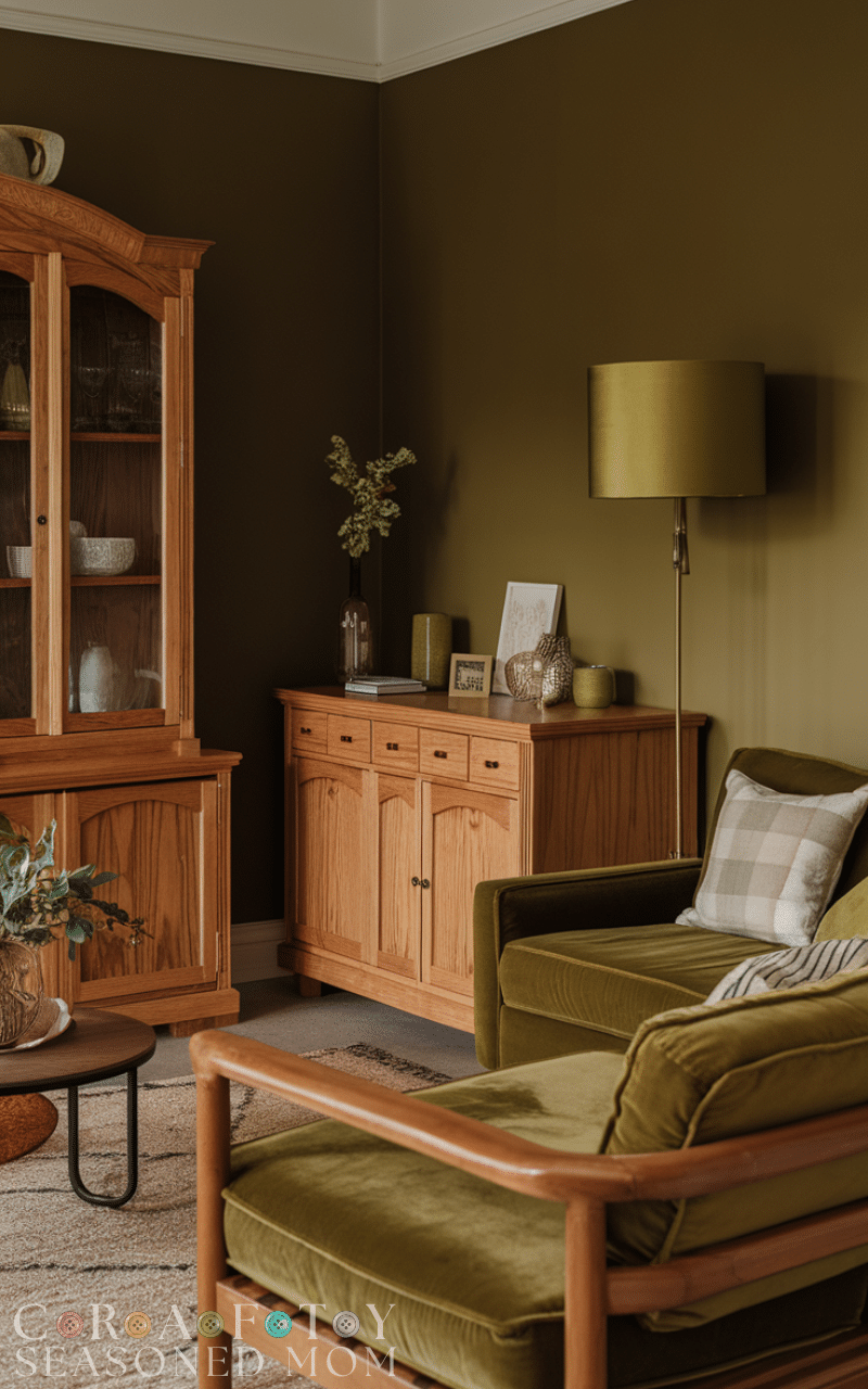 Olive green is a deeper, earthy tone that pairs surprisingly well with the Paint Colors Honey Oak Pairs works with. It creates contrast while still staying within a warm color family. This combination feels grounded and cozy, especially in living rooms or offices. Olive green makes honey oak look rich and intentional rather than outdated.