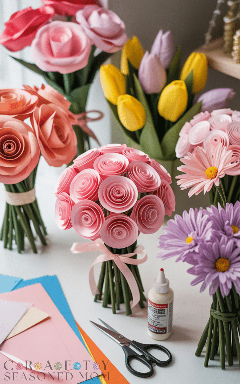 Paper flower bouquets are a beautiful way to bring color and charm into any space without worrying about wilting or maintenance. Using basic supplies like colored paper, scissors, and glue, you can create roses, tulips, or daisies in any style you like. They work perfectly as home decorations, thoughtful handmade gifts, or even event décor, and they always add a personal touch wherever they’re displayed.