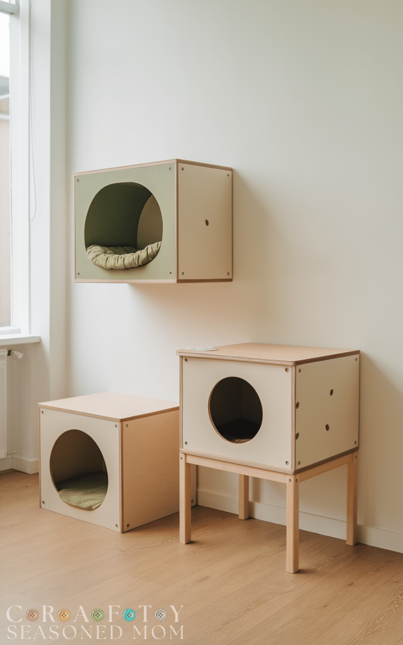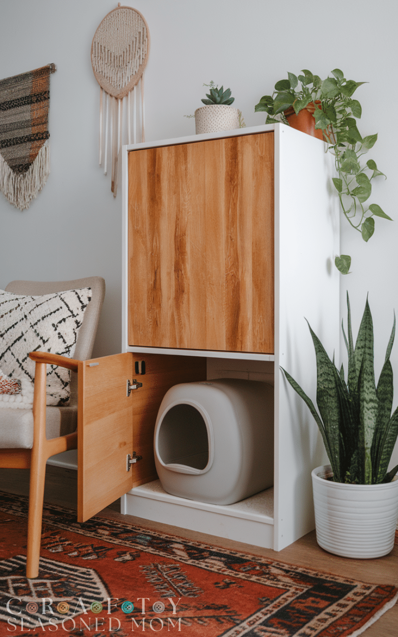 You can keep your space tidy by using a cabinet that hides the litter box. This is one of the most practical cat room decor ideas because it keeps the room clean and stylish. Choose a piece with good ventilation and easy access for cleaning. It looks like normal furniture but serves an important purpose in your cat room.
