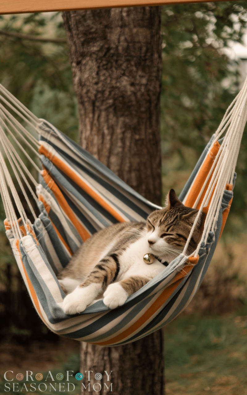 Cats love to nap in hammocks because they feel safe and comfy. You can attach a hammock under a table or use a freestanding one. These cat room decor ideas are perfect for both kittens and adult cats. Choose a strong and soft fabric to ensure safety and comfort while keeping the look cute and trendy.