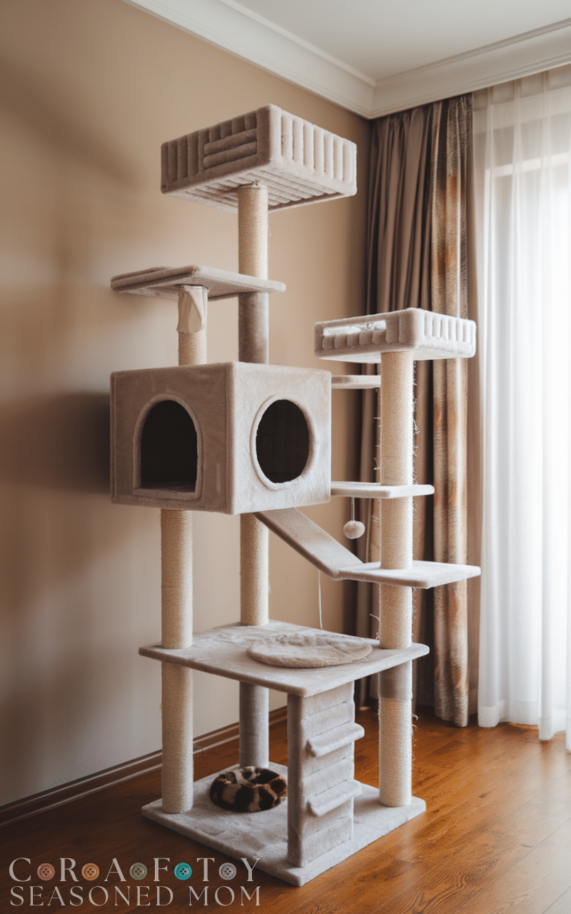 Every cat deserves a tall cat tree where they can climb and relax. Choose one that fits your room’s color and style so it blends nicely. These cat room decor ideas not only please your pet but also add vertical beauty to your space. A multi level cat tree becomes both a playground and a decoration centerpiece.