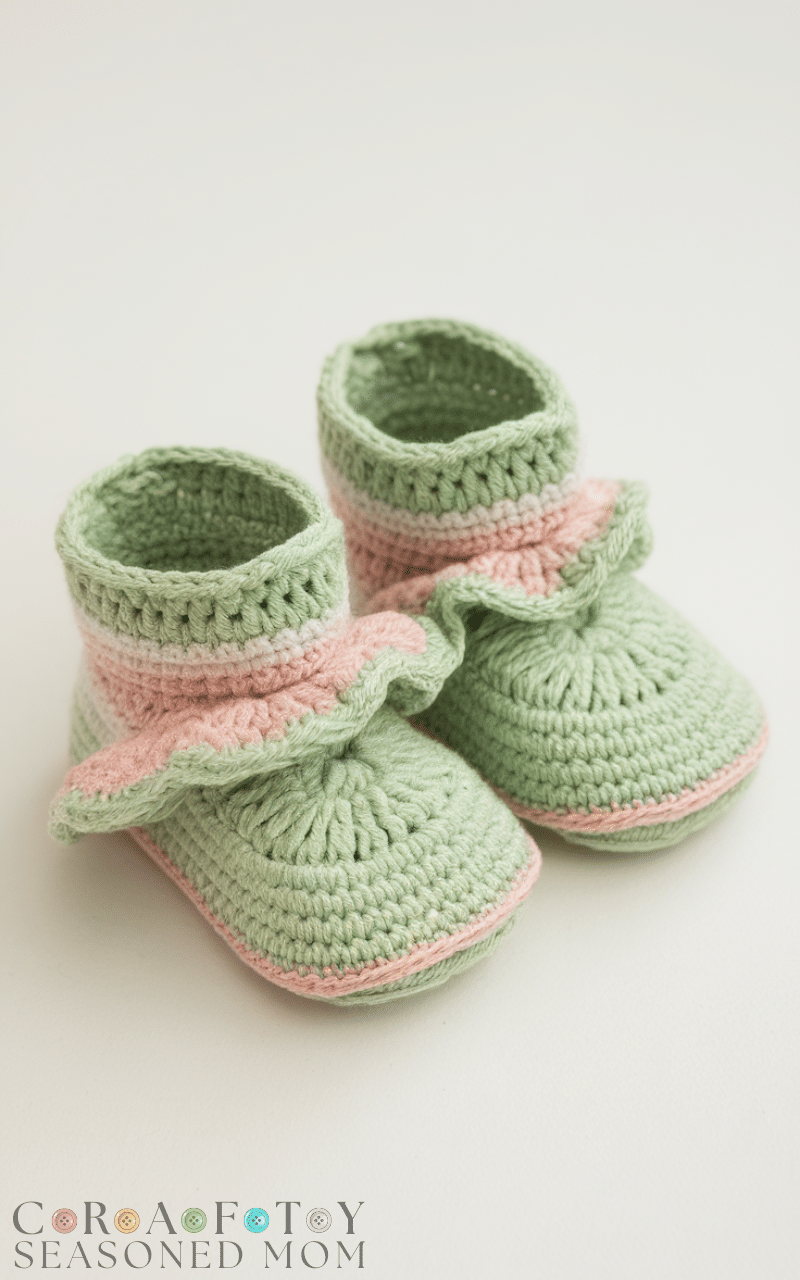 Baby booties are adorable green crochet projects ideas, especially in soft pastel green shades. Green works well as a neutral color for baby gifts and feels calming and gentle. This project is small, quick, and rewarding, making it ideal if you want a thoughtful handmade gift.