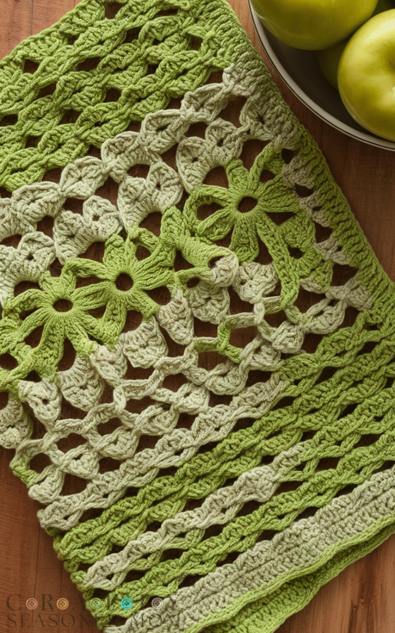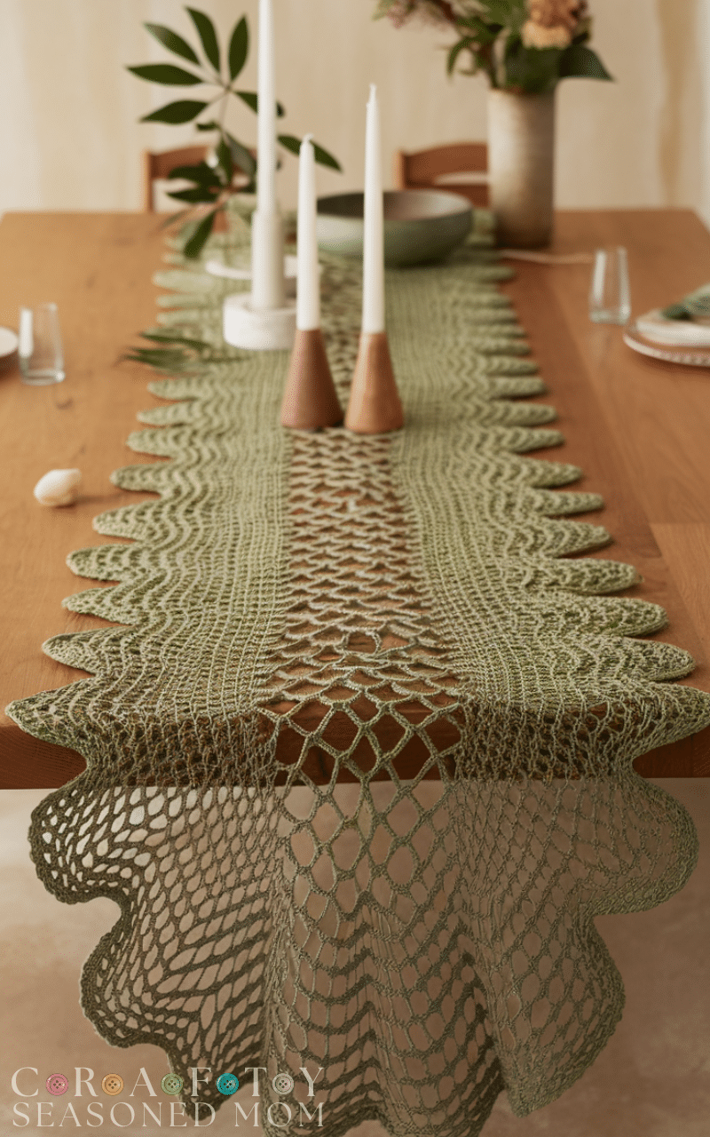 Table runners are elegant green crochet projects ideas for seasonal décor. Green works beautifully for spring, summer, or holiday themes. This project adds handmade charm to dining tables and helps you practice long, even rows and stitch consistency.