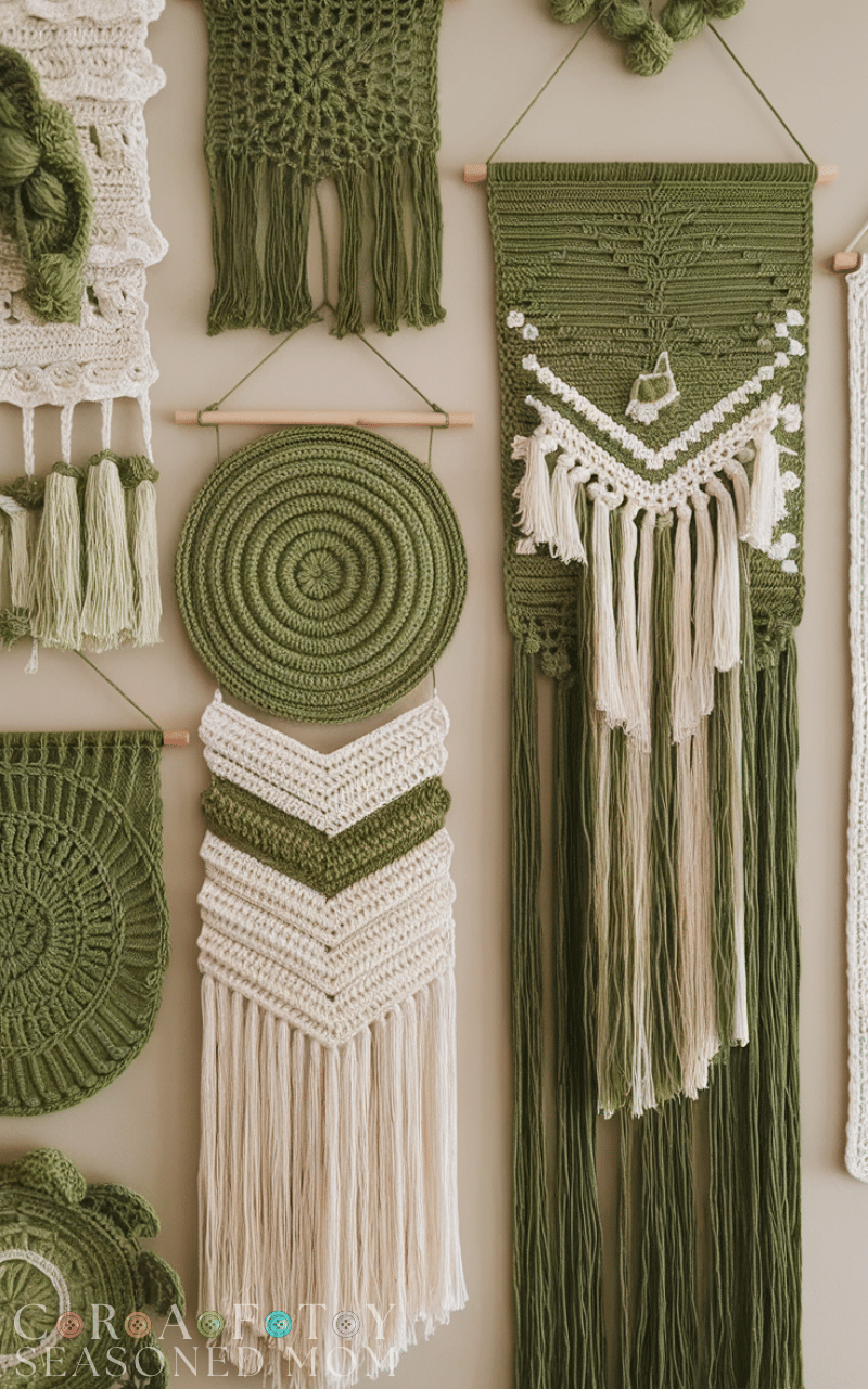 Wall hangings are creative green crochet projects ideas for home décor lovers. Using green tones adds a boho and natural vibe to walls. This project allows artistic freedom with textures, fringes, and patterns, making every piece unique.