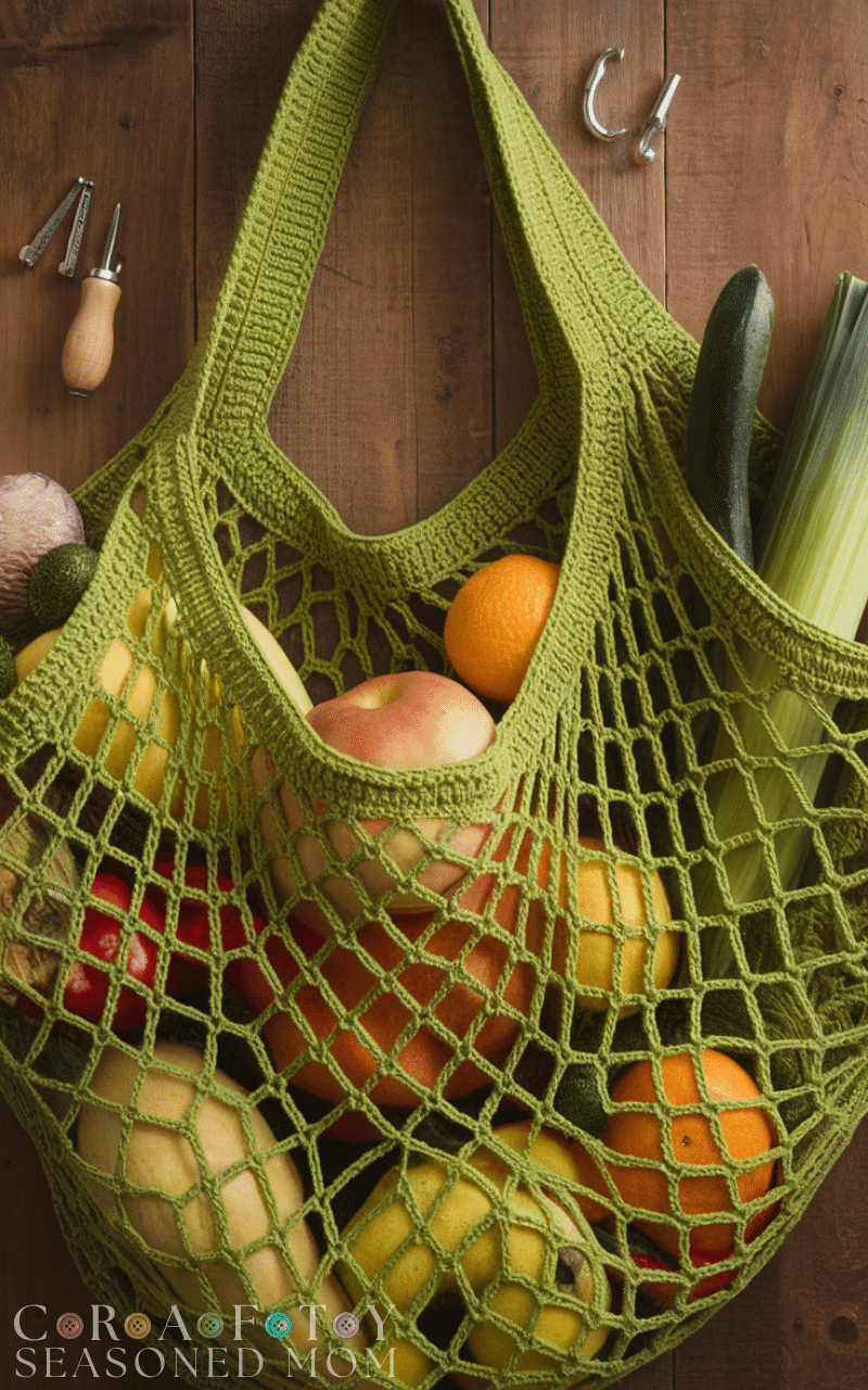 Market bags are popular green crochet projects ideas for sustainable living. They stretch to hold fruits and vegetables and reduce plastic use. Green yarn reinforces the eco-friendly feel of this project. These bags are lightweight, strong, and stylish.