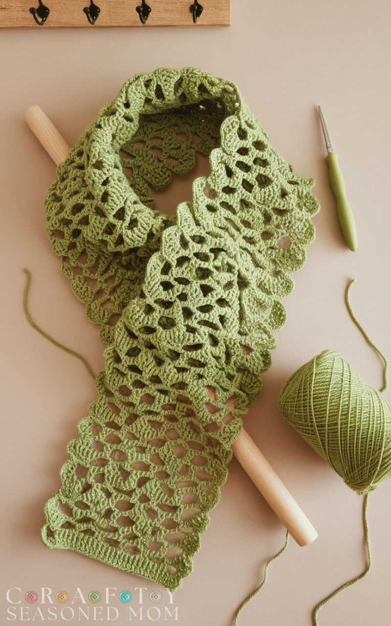 Scarves are timeless green crochet projects ideas that are easy and versatile. Green scarves work for every season, especially when made with lightweight yarn. This project is perfect for beginners because it involves simple stitches and repetitive rows, making it relaxing and satisfying.